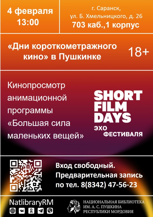 12 января - 25 декабря Место и время проведения: ГБУК «Национальная библиотека им. А. С. Пушкина Республики Мордовия», г. Саранск, ул. Б. Хмельницкого, д. 26, Читать далее