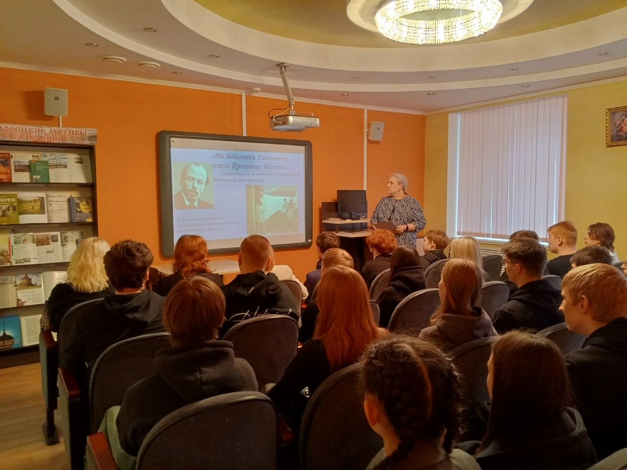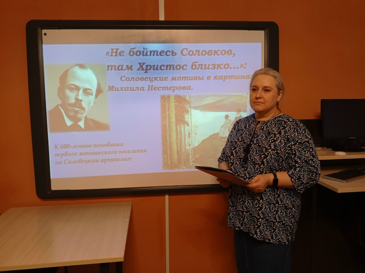 11 ноября в рамках указа президента «О праздновании 600-летия основания первого монашеского поселения на Соловецком архипелаге» в отделе литературы по искусству состоялась арт-беседа «Не бойтесь Соловков, там Христос близко…» о соловецких мотивах в картинах Михаила Нестерова.