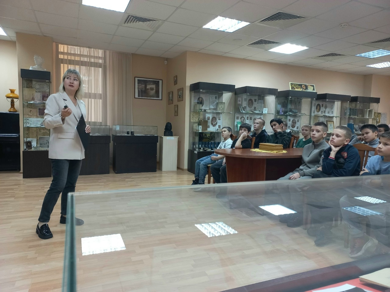 Сотрудники отдела гуманитарной литературы рассказали ребятам из Детско-юношеской спортивной школа № 4 г. Саранска о создании первых «хранилищ мудрости», об основании Национальной библиотеки Мордовии, о том, как она менялась, развивалась, а также о её фондах и значимых событиях.