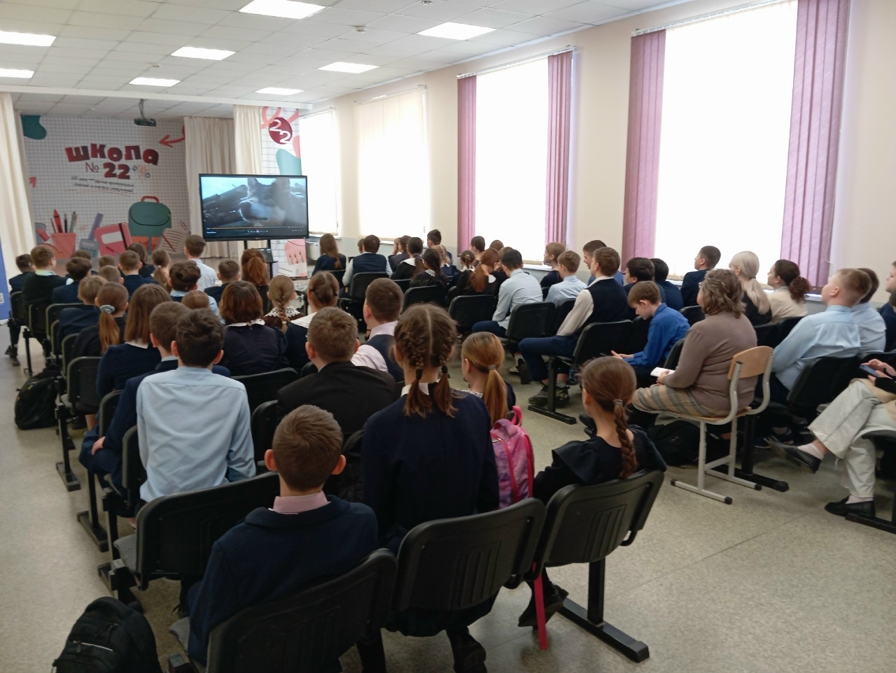 В завершение мероприятия учащихся ждал просмотр отрывков из знаменитых экранизаций Джека Лондона. Юные зрители увидели сцены из культовых фильмов, основанных на его книгах «Белый Клык» и «Зов предков», а также ознакомились с книгами отдела.