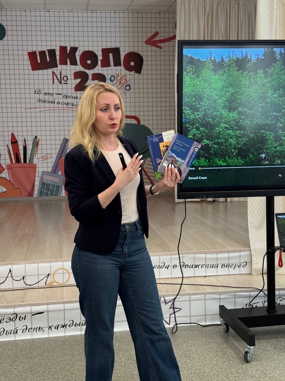 Школьникам была представлена история путешествий самого писателя, показаны редкие иллюстрации и документальные кадры, отражающие экзотику Аляски, плавание по Тихому океану и приключения в Южной Америке. Ребята поучаствовали в интерактивной викторине по известным произведениям писателя, таким как «Белый Клык», «Морской волк», «Сын Волка», вспомнили другие популярные истории мировой литературы, главными героями которых являются животные.