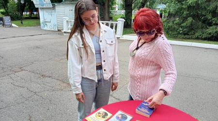 В городском парке сотрудники сектора межбиблиотечного абонемента и отдела комплектования Пушкинки провели очередную акцию «Библиотечный бульвар “Наш выход”».