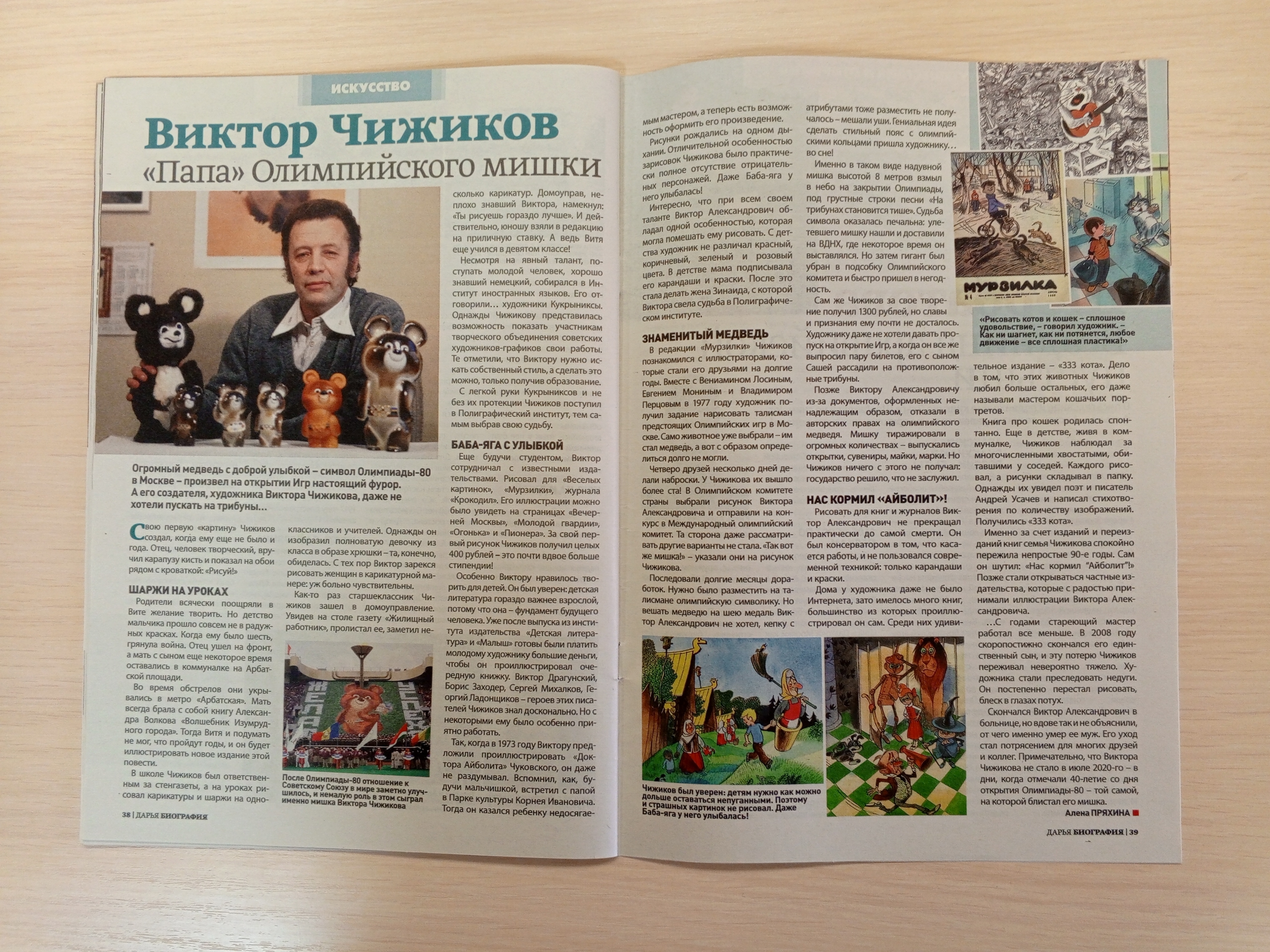 Но самая известная работа Чижикова, конечно же, олимпийский Мишка, именно он автор образа медвежонка Миши, талисмана летних Олимпийских игр 1980 года в Москве.