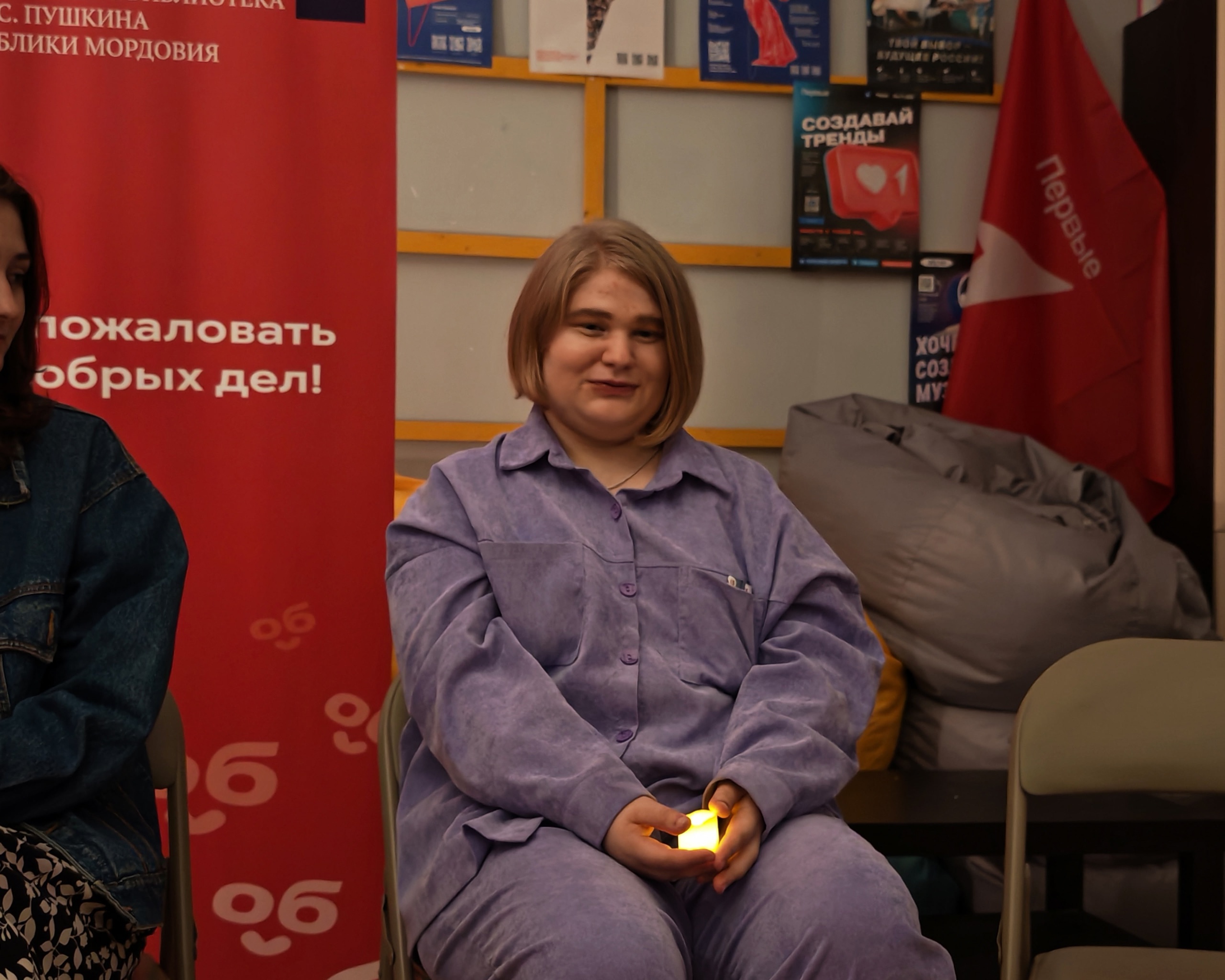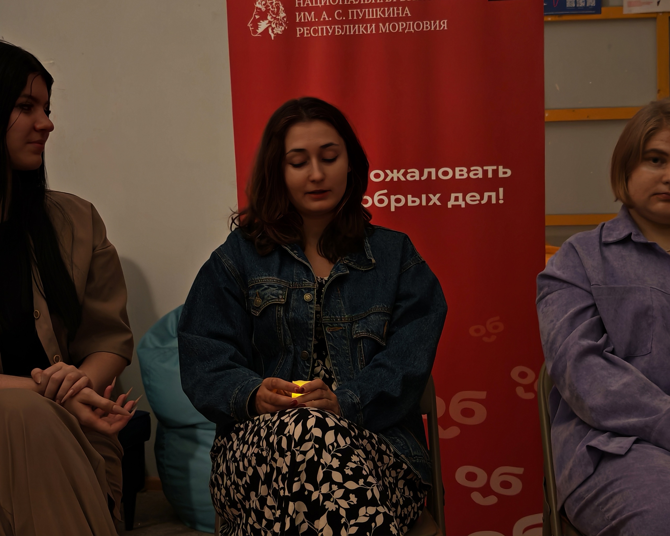 Волонтеры собрались в уютной атмосфере библиотеки, чтобы поучаствовать в традиционной «свечке». Передавая символическую свечу, они делились историями о своей работе: о поддержке семей участников СВО, помощи пожилым людям и личных примерах взаимовыручки. Несмотря на то, что некоторые волонтеры не смогли присоединиться к нам лично, они отправили свои видеопослания и также были на связи.