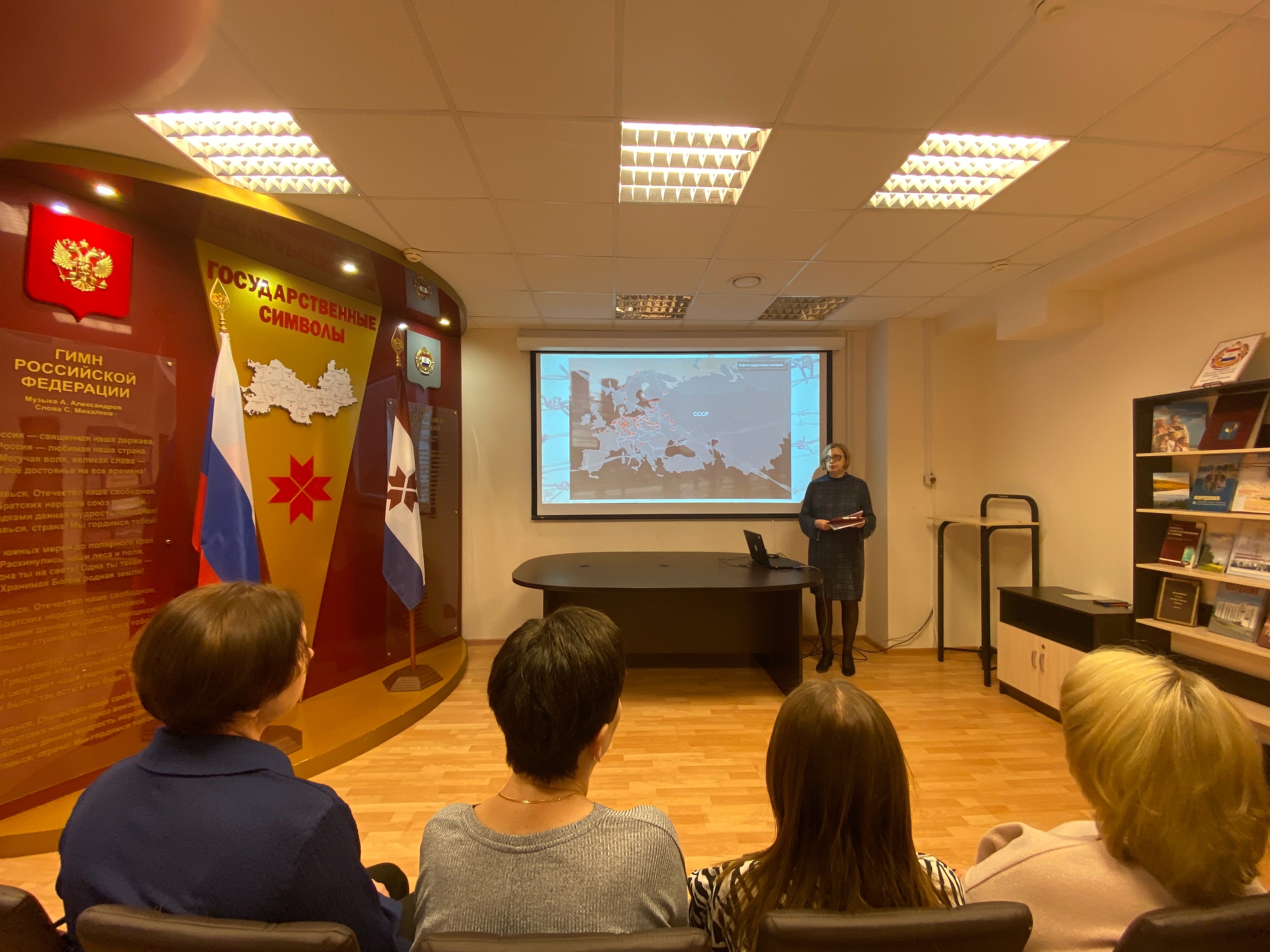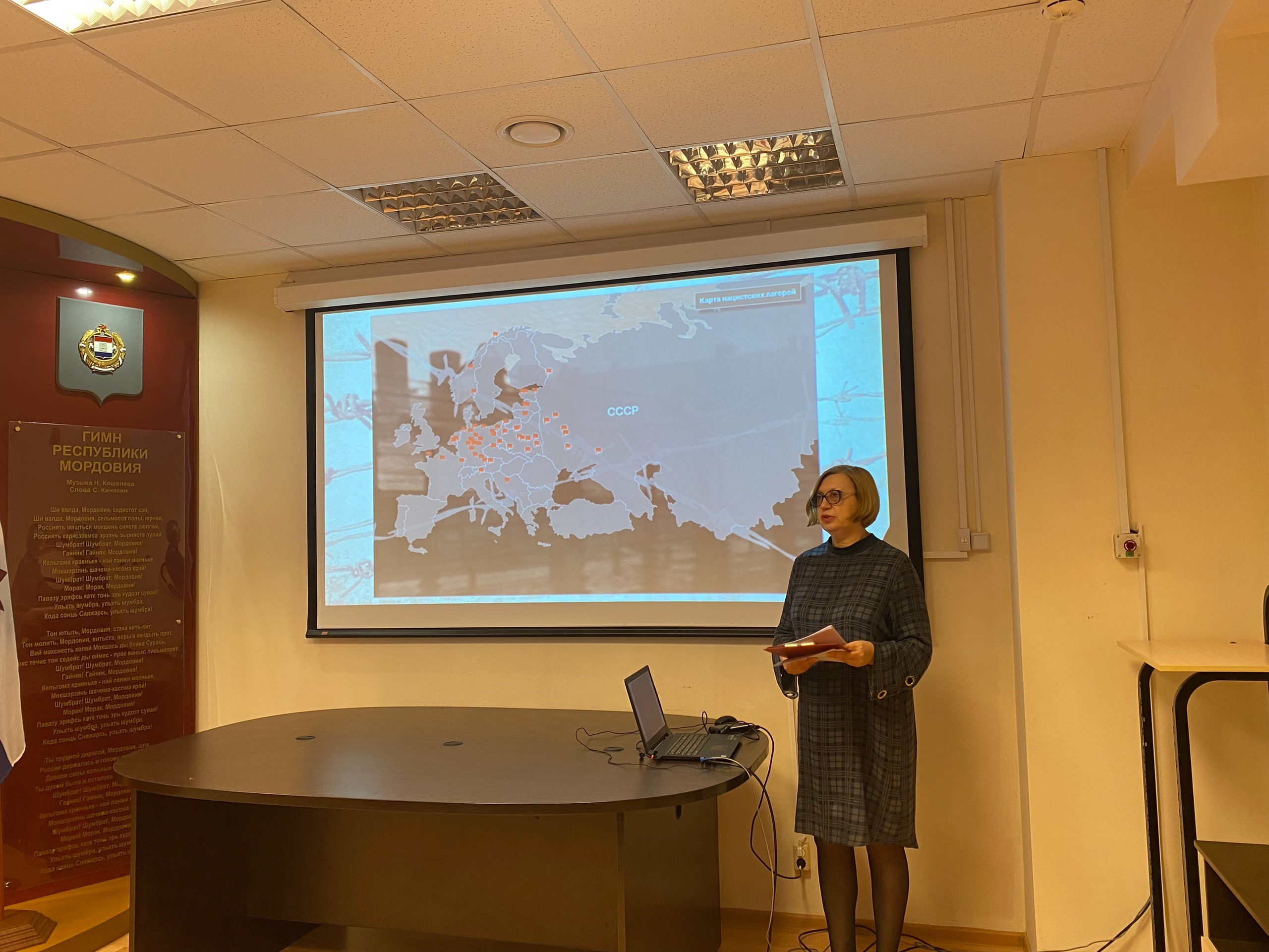 10 апреля библиотекари отдела информационно-библиографического обслуживания провели час памяти «Об этом забывать нельзя» для сотрудников МТУ Росимущества в РМ, РМЭ, ЧР и ПО. Гостям рассказали о зверствах нацистов в концлагерях, о миллионах жертв фашизма и несломленном духе выживших узников. Повествование сопровождалось презентацией.