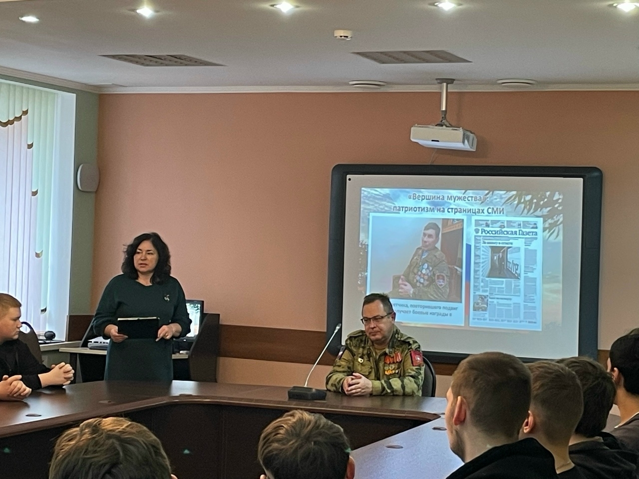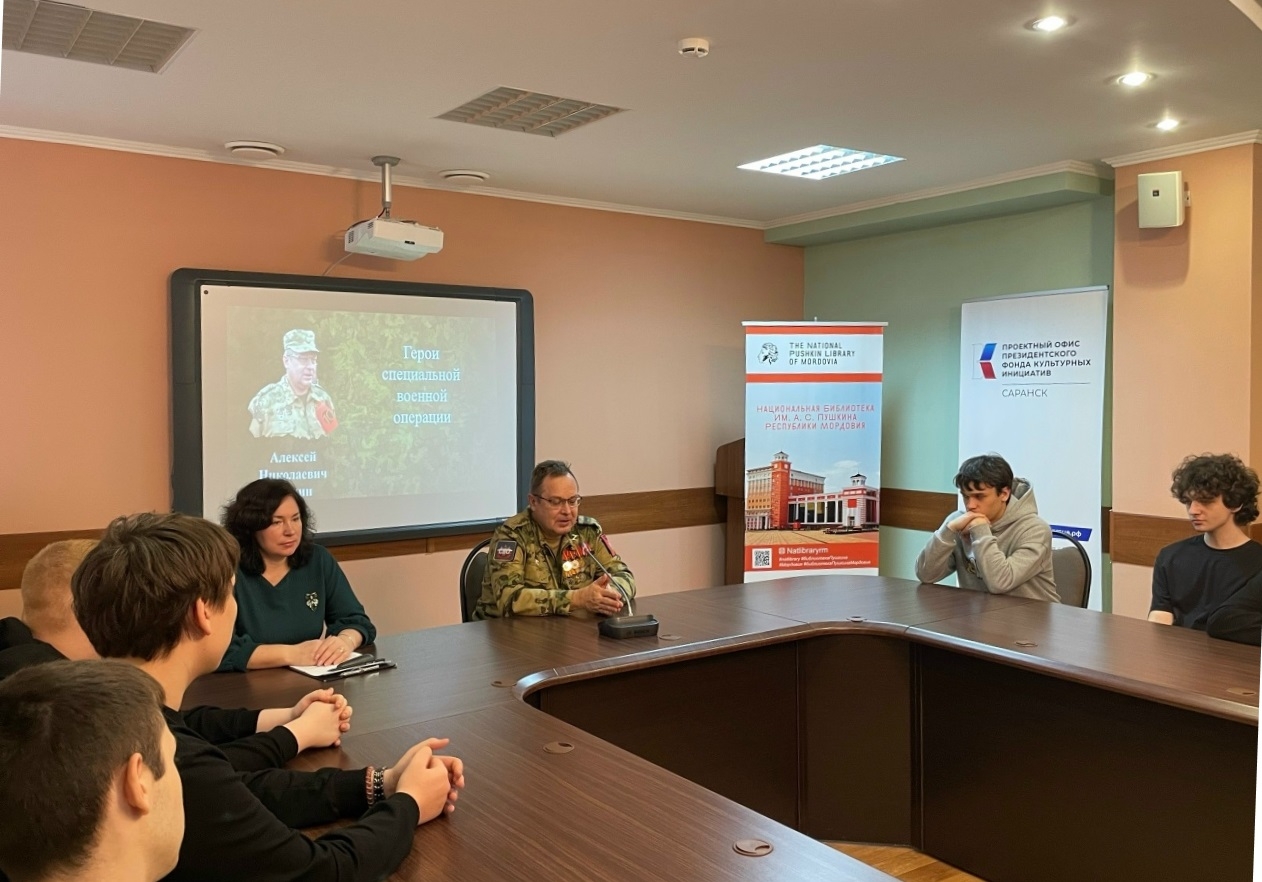 В рамках цикла патриотических встреч «Знать и помнить» сотрудники отдела периодических изданий 18 ноября провели для студентов Саранского техникума энергетики и электронной техники им. А. И. Полежаева час патриотизма «Герои нашего времени», посвященный мужеству и героизму участников специальной военной операции.