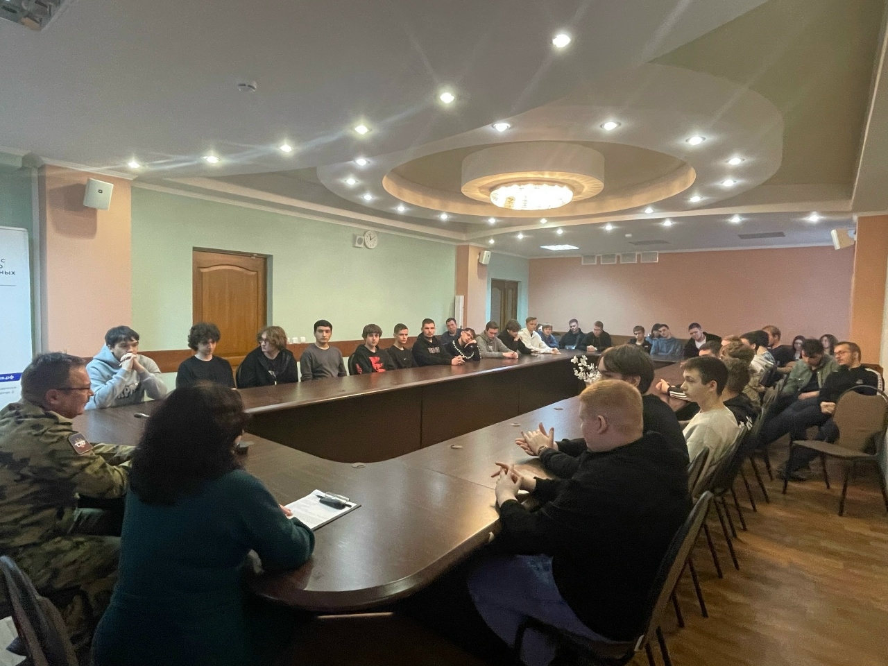 Особым гостем встречи стал участник специальной военной операции, представитель Ассоциации ветеранов специальной военной операции Алексей Николаевич Гущин. Он рассказал ребятам о личном опыте участия в спецоперации, её важности; и о тех, кто с честью сражается в зоне СВО и делает всё для того, чтобы у фашизма не было будущего. В ходе беседы ребята задавали вопросы о сложностях службы военнослужащего, дисциплине и мечтах.