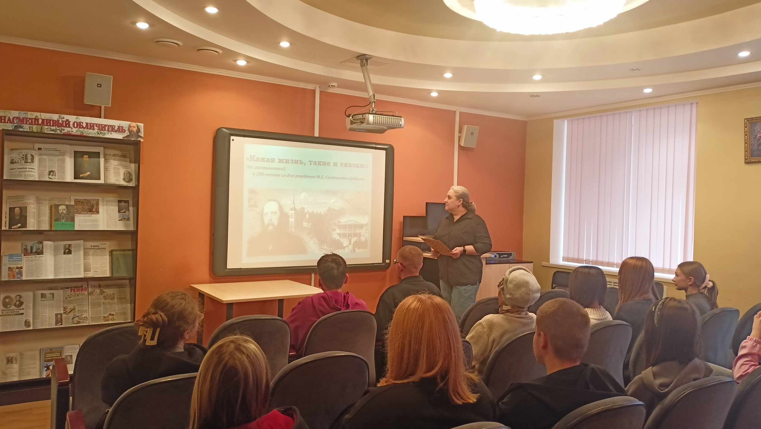 13 октября сотрудники отдела литературы по искусству провели встречу «Какая жизнь, такие и сказки», приуроченную к 200-летию со дня рождения М. Е. Салтыкова-Щедрина. В этот раз гостями стали первокурсники Саранского техникума энергетики и электронной техники имени А. И. Полежаева.