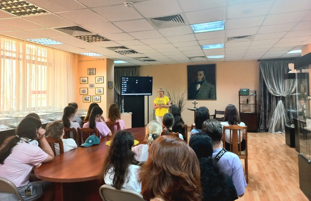 10 июня встреча началась в музее библиотеки – Пушкинском зале с истории появления в Саранске первой бесплатной библиотеки-читальни, которая впоследствии стала Национальной библиотекой им. А. С. Пушкина. Интересные факты из жизни А. С. Пушкина, его предков и потомков стали настоящим откровением для ребят.