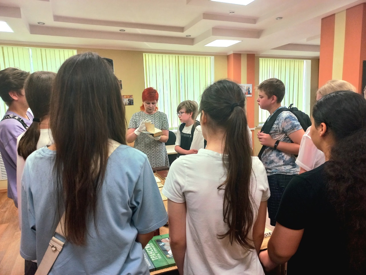 Сотрудник отдела гуманитарной литературы провела экскурсантов по разным отделам, включая Зал государственной символики, отдел абонемента, отдел редких книг и работы с книжными памятниками, а также отдел хранения основного фонда. Было много вопросов в музее «Экспонаты времени», веселья – в БиблиоСпортЗале.