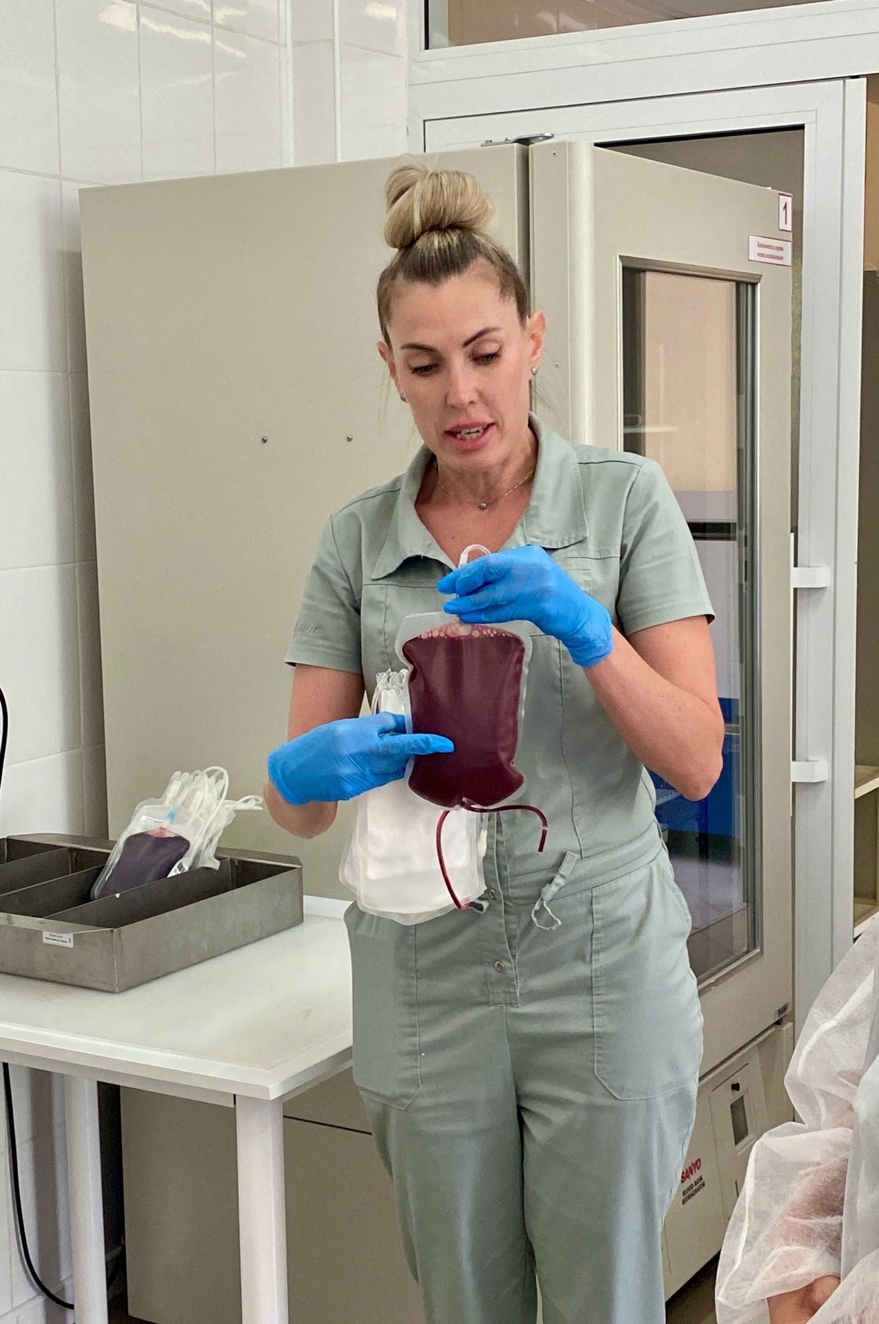На экскурсии молодежь Пушкинки прошла по пути донора – от входа до зала, где происходит забор крови, далее заглянула в помещения, где осуществляются различные манипуляции с кровью, принятой от доноров, – разделение компонентов, лабораторные исследования, контроль безопасности, заморозка и хранение. Еще одной важной частью посещения станции переливания для библиотекарей стал рассказ о донорстве костного мозга – процедуре, при которой человек становится донором гемопоэтических стволовых клеток для лечения пациентов с тяжелыми заболеваниями крови, такими как лейкоз, апластическая анемия и другие.