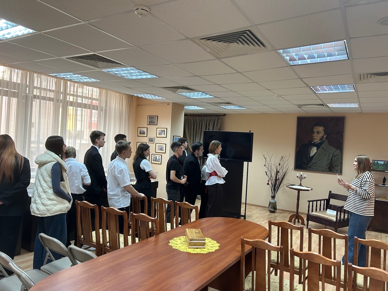 После представления артисты смогли прикоснуться к истории Национальной библиотеки Мордовии, с гордостью носящей имя великого поэта, посетив библиотечный музей – Пушкинский зал. Библиотекарь отдела абонемента провела для них познавательную экскурсию, которая познакомила гостей с историей уездного Саранска на рубеже XIX–XX веков и этапами становления главной библиотеки Республики Мордовия. Артисты смогли увидеть её первые книги и рассмотреть ценные старинные экспонаты, а также узнать интересные факты о связях А. С. Пушкина с мордовским краем.