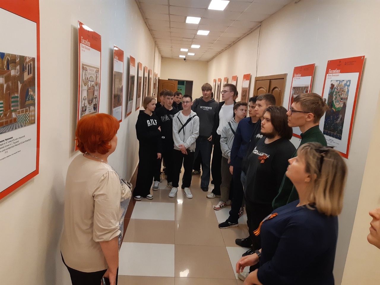 12 мая учащиеся Саранского политехнического техникума познакомились с выставкой цифровых копий оригинальной графики «“Из осажденной крепости не бегут…ˮ Творчество И. Я. Билибина», созданной в рамках деятельности регионального центра Всероссийского музея А. С. Пушкина в г. Саранске и посвященной юбилею Великой Победы.
