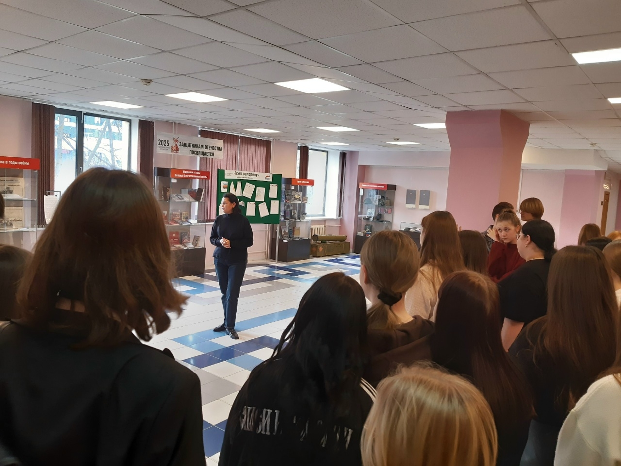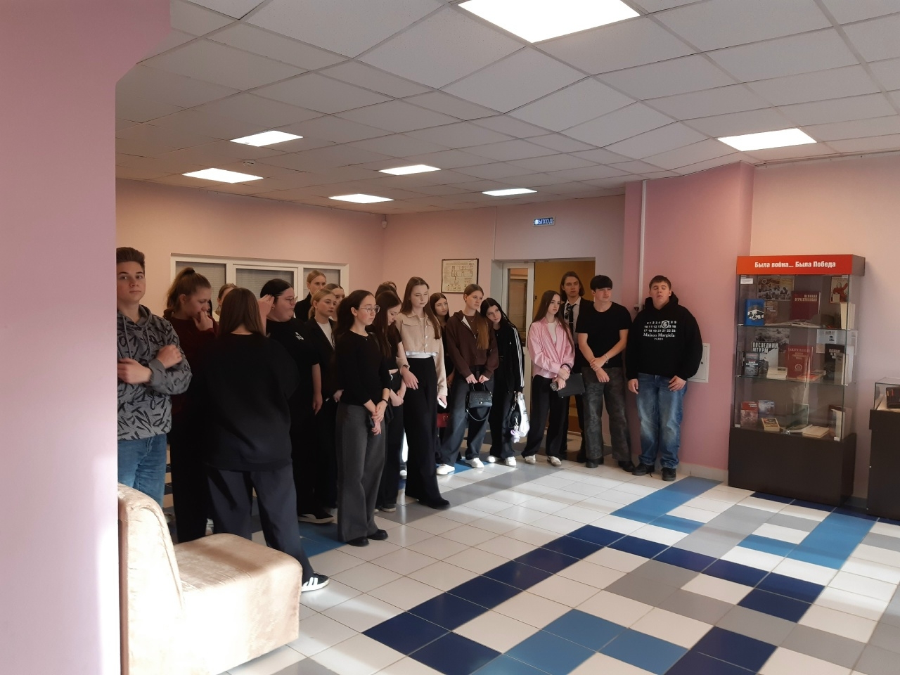 4 декабря сотрудники отдела абонемента провели для студентов Многопрофильного колледжа Института довузовского образования МГУ им. Н. П. Огарёва экскурсию по выставке «Защитникам Отечества посвящается», посвященную Году защитника Отечества и 80-летию Победы в Великой Отечественной войне.