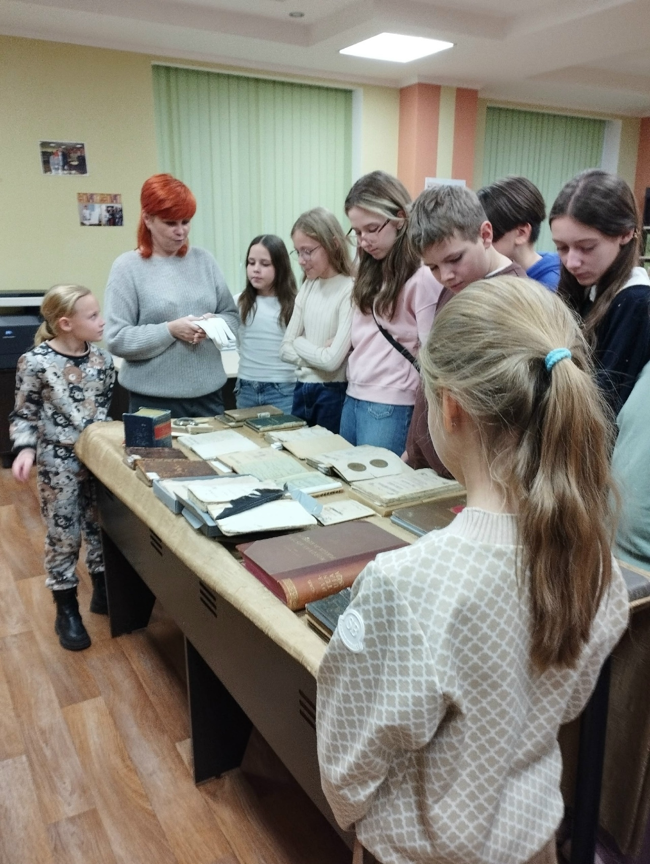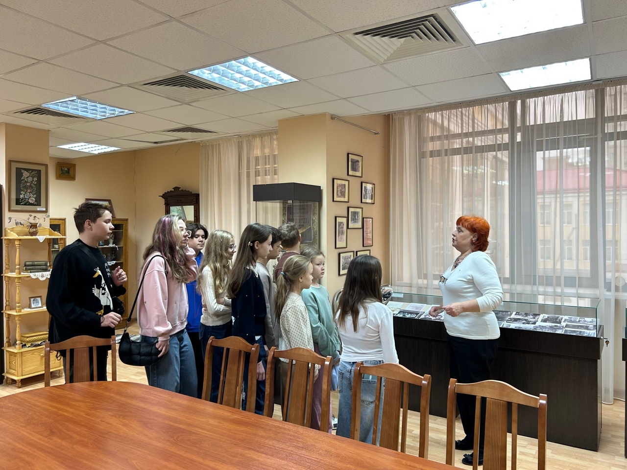 Дети внимательно осмотрели масштабную выставку-инсталляцию, посвященную Году защитника Отечества, а также экспозицию действующего на базе Пушкинки регионального центра Всероссийского музея А. С. Пушкина «Преданья русского семейства», посвященную роду Пушкиных и породнившихся с ними Ганнибалов.