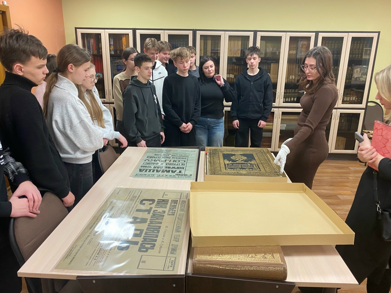 5 марта библиотеку посетили учащиеся школы № 12 города Рузаевки. Знакомство с Пушкинкой началось с величественного Пушкинского зала, хранящего более чем вековую летопись нашего учреждения. Программа пребывания была насыщенной: ребята посетили отдел абонемента, Зал государственной символики, сектор хранения периодических изданий, прикоснулись к вечности в отделе редких книг и работы с книжными памятниками. Гости познакомились с выставкой «Преданья русского семейства», открытой в рамках деятельности регионального центра Всероссийского музея А. С. Пушкина, а также с экспозицией «Голоса культуры: мастера творчества», посвященной 150-летию Союза театральных деятелей и 150-летию С. Д. Эрьзи. Особый интерес школьников вызвал региональный центр консервации и реставрации библиотечных фондов.