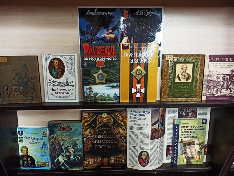 В отделе гуманитарной литературы открылась книжная выставка «Александр Суворов. Полководец и человек», посвященная 295-летию со дня рождения гения военного искусства, непобедимого генералиссимуса, Светлейшего князя Италийского, графа Рымникского и Священной Римской империи, кавалера всех российских орденов и многих иностранных.