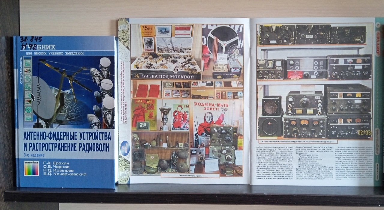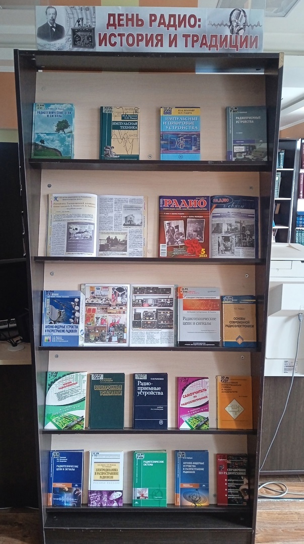 В отделе естественнонаучной и производственной литературы оформлена книжная экспозиция «День радио: история и традиции». Здесь представлены издания, освещающие современное применение радиоволн в самых разных областях науки и техники: от радиосвязи и радиовещания до телевидения, радиолокации, радионавигации, радиоастрономии, и даже разработок волноводных СВЧ-фильтров и мультиплексоров для спутниковых систем.