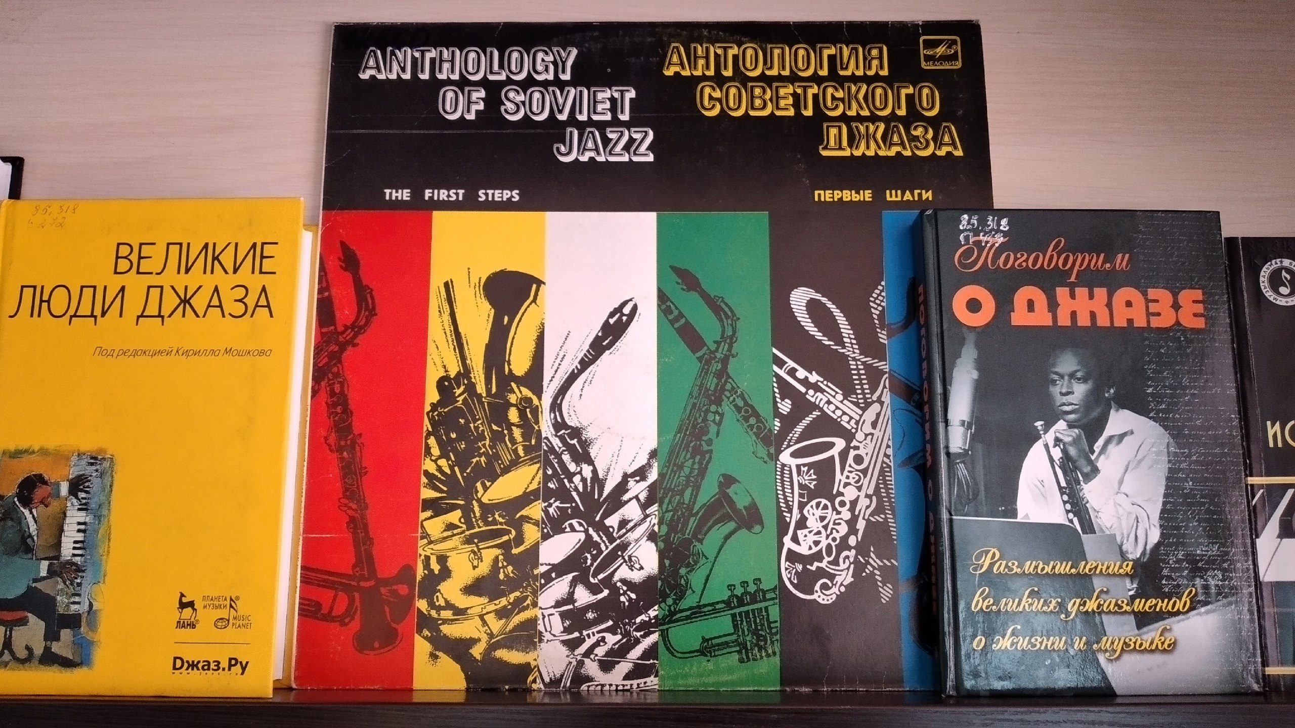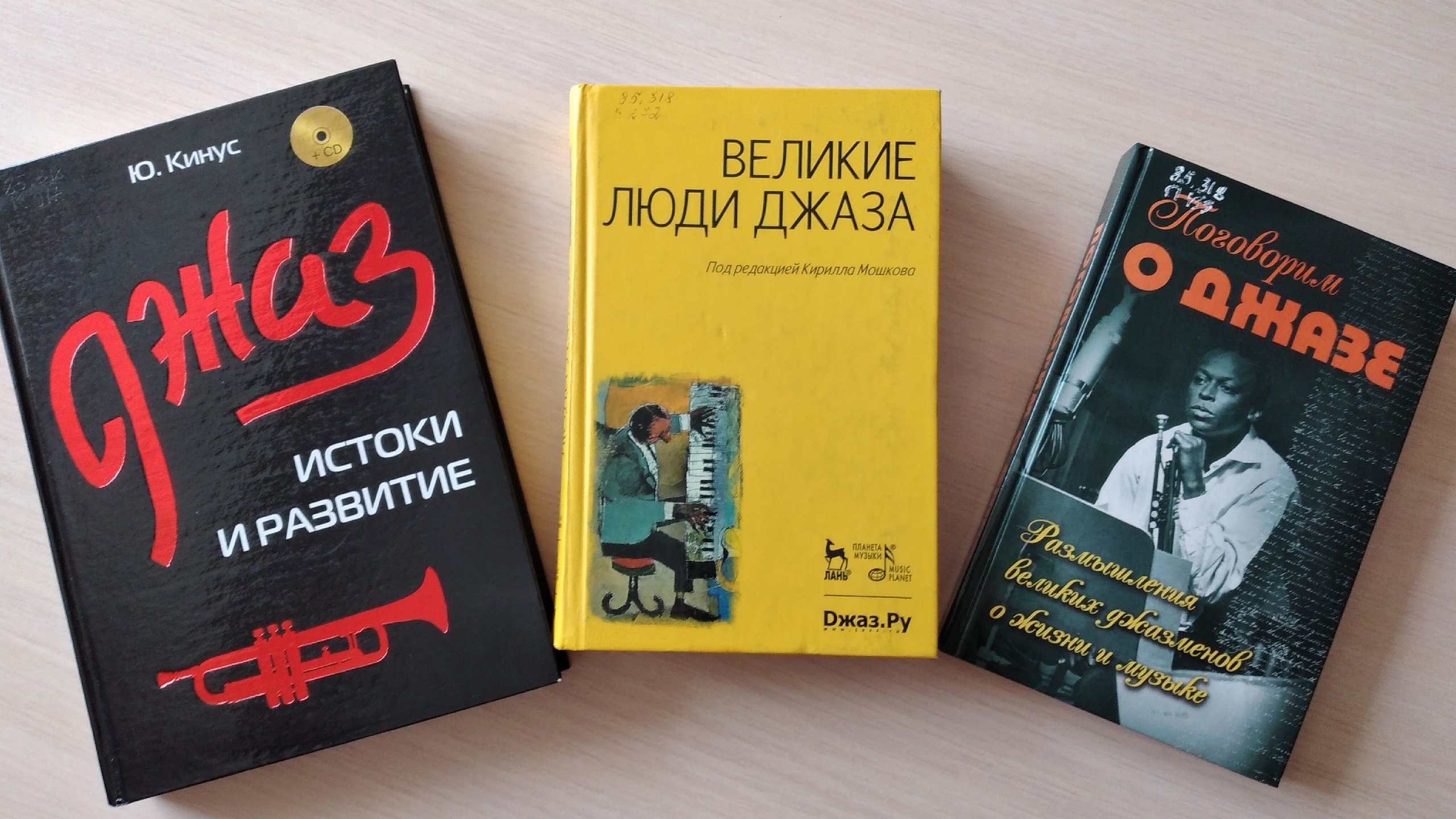 В экспозиции представлены книги, среди которых – «Великие люди джаза» под редакцией К. Мошкова, «Джаз. История. Стили. Мастера» Ю. Верменича, книги Ю. Г. Кинуса «Джаз», «Джаз: истоки и развитие», «Из истории джазового исполнительства» и «Импровизация и композиция в джазе», «Становление джаза» Дж. Коллиера, «Рождение джаза» В. Д. Конена и др.