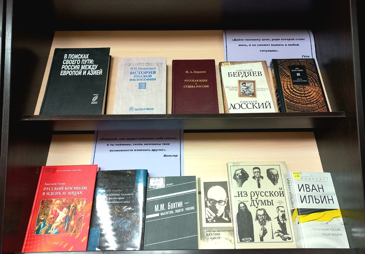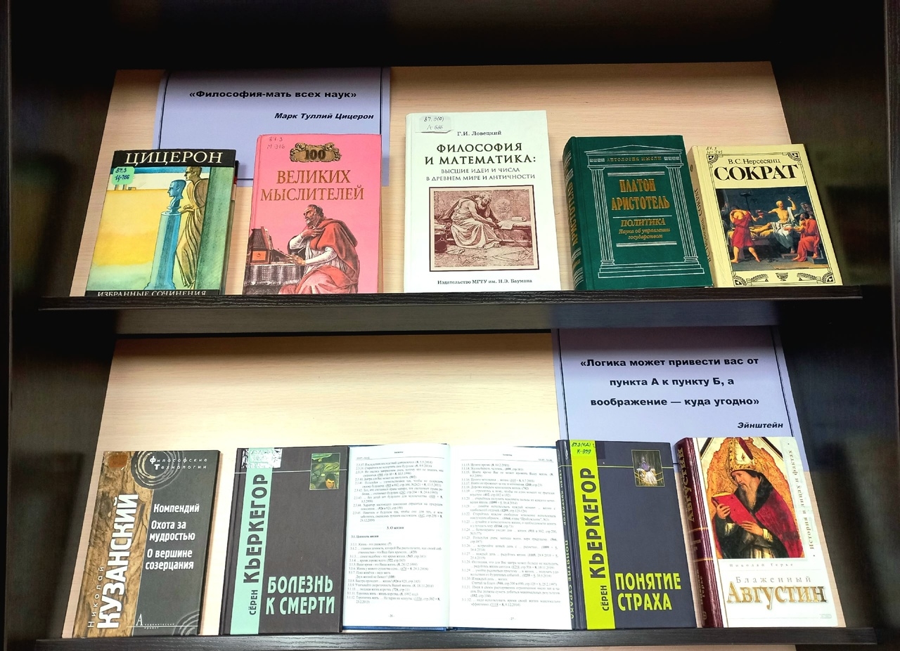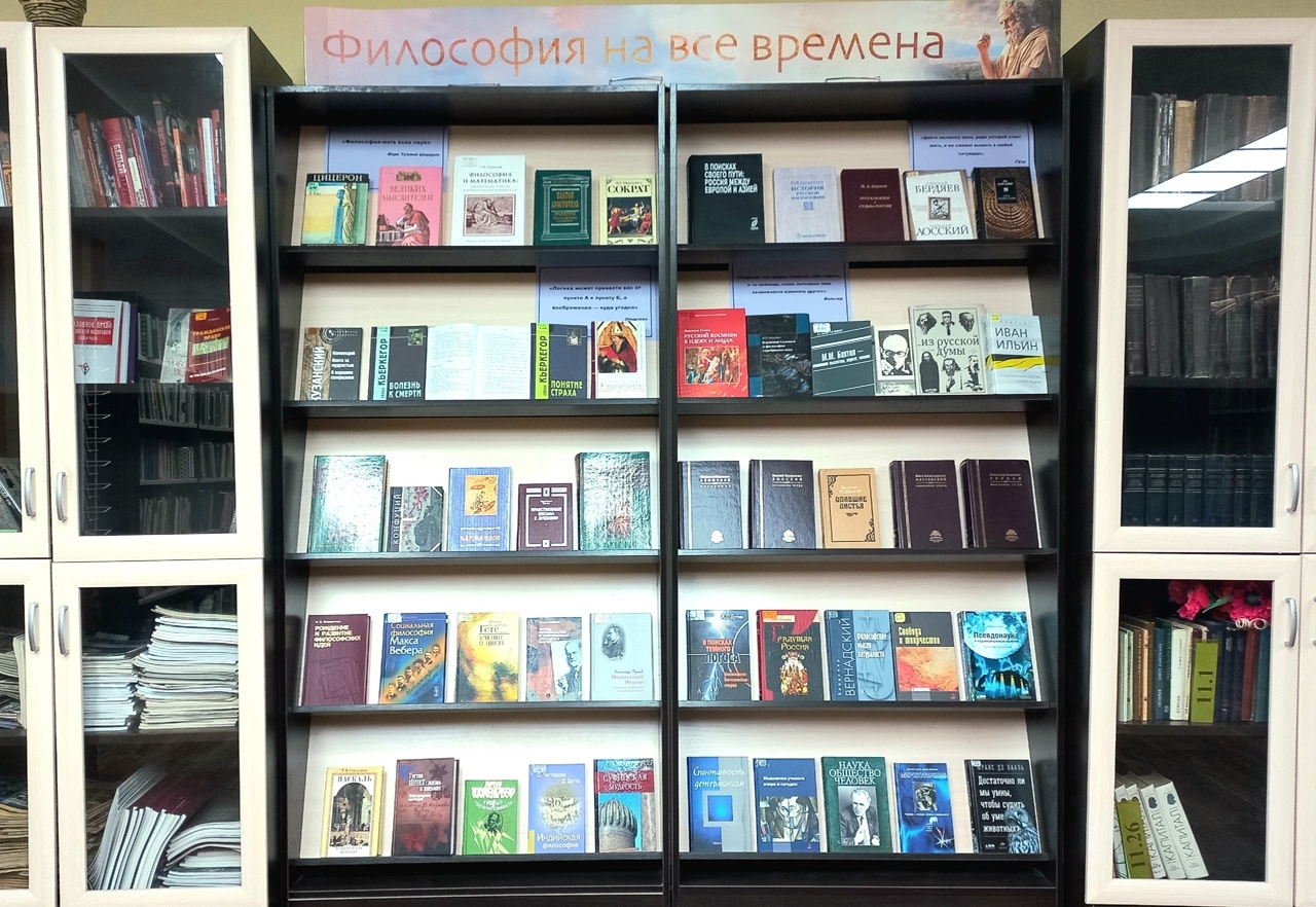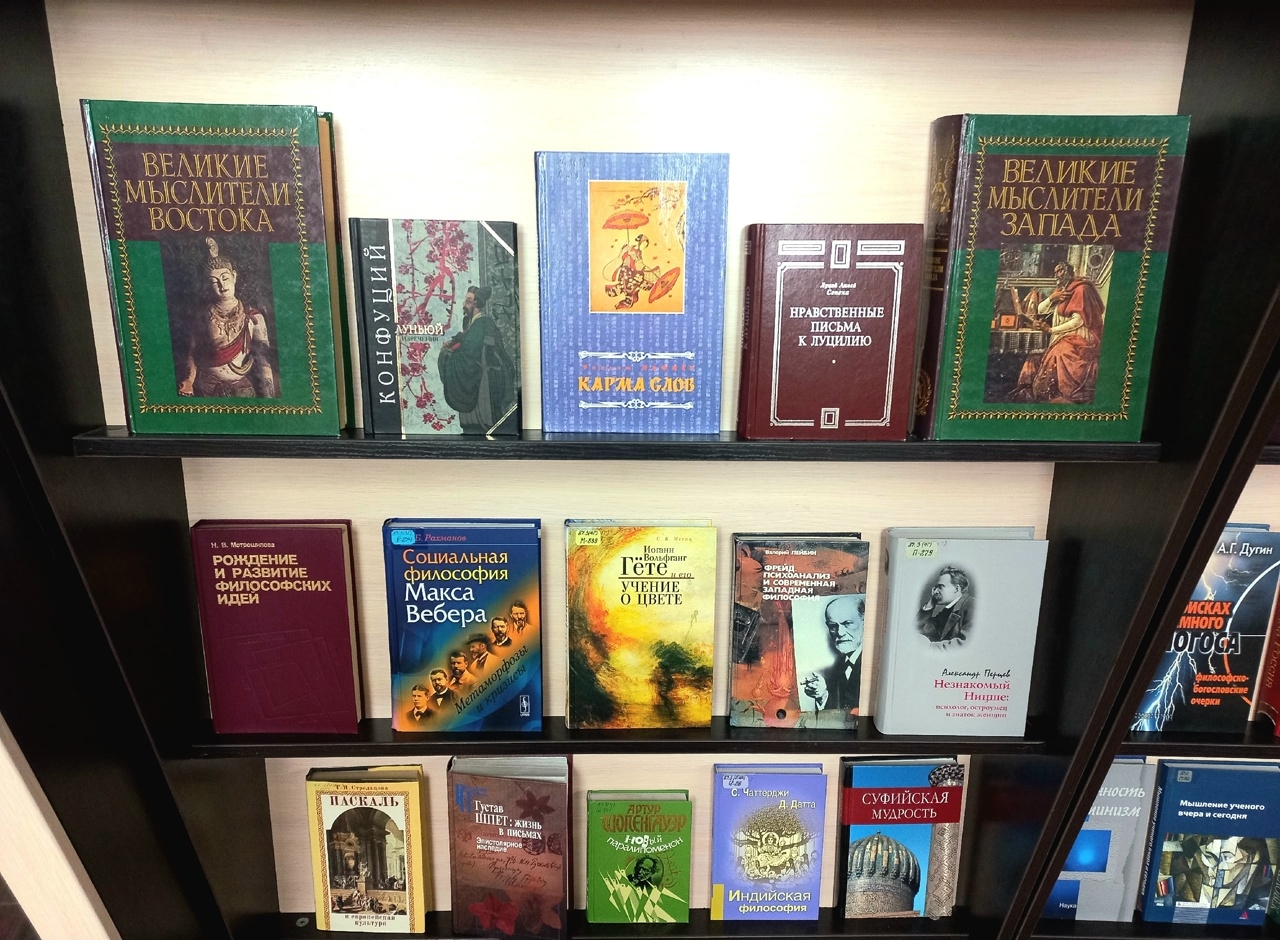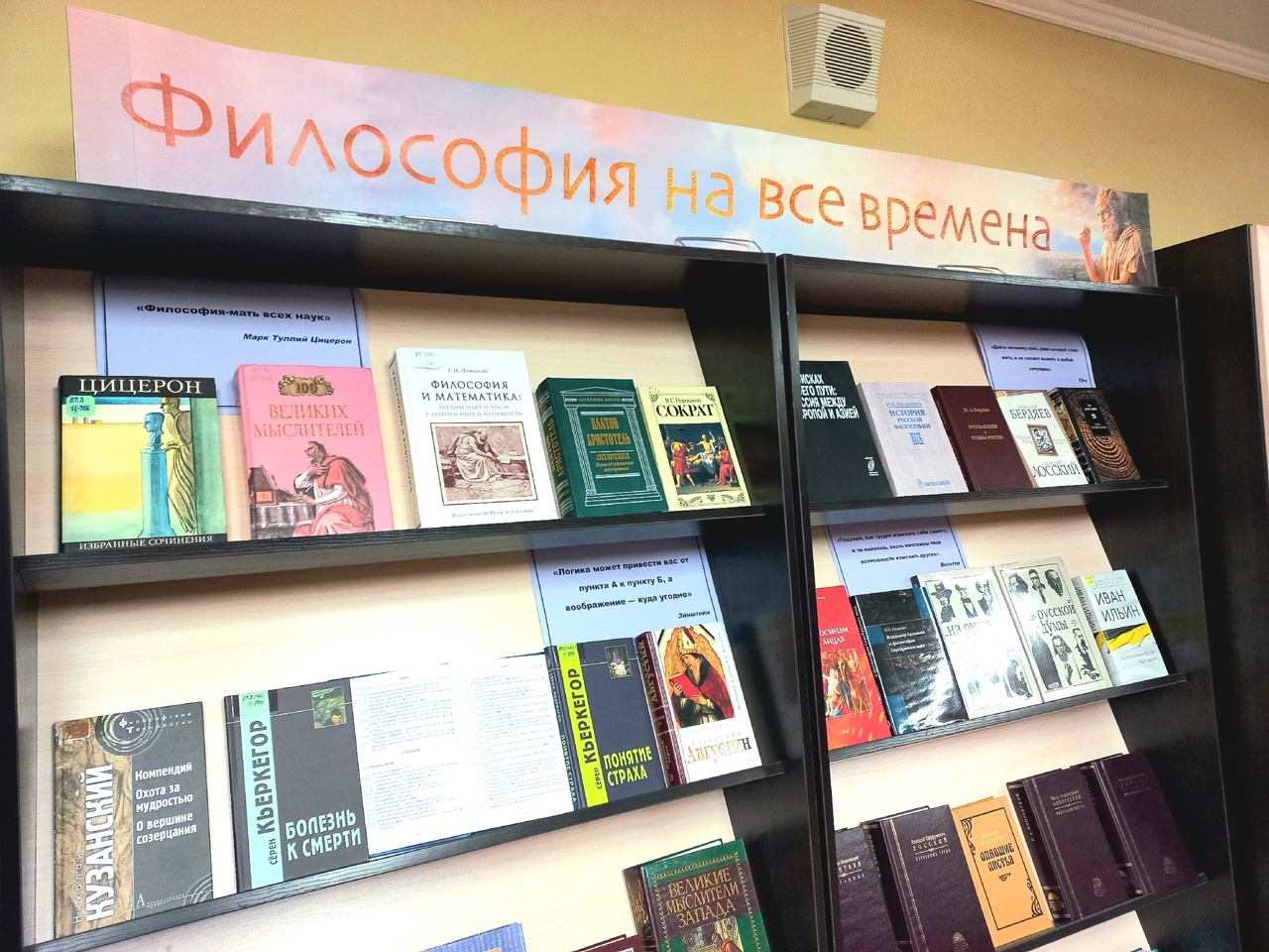 К Всемирному дню философии в отделе гуманитарной литературы (405 к.) открылась выставка «Философия на все времена», которая привлекает внимание читателей к теме философии, а также знакомит с разнообразием философской мысли и её историческим развитием.