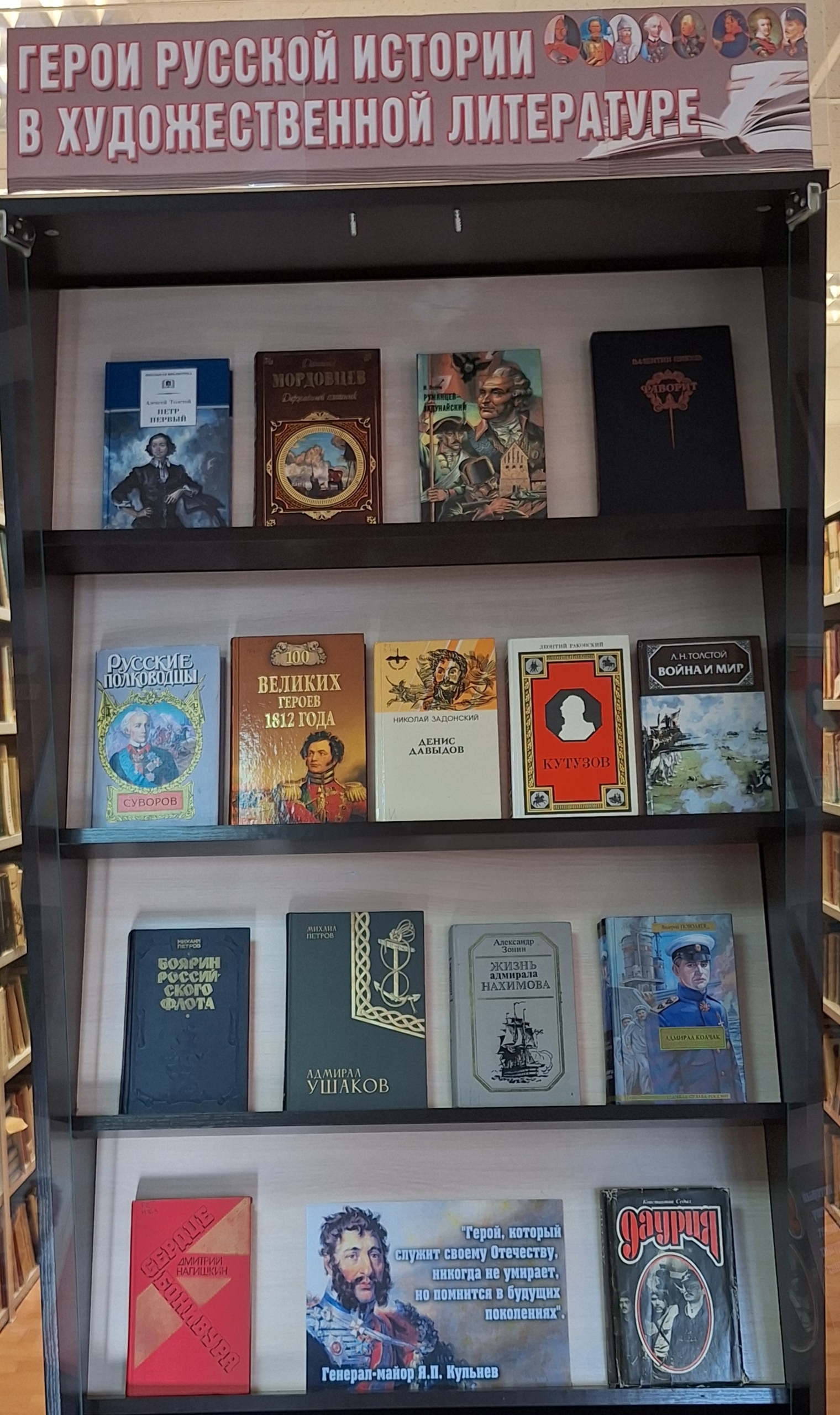 Отделом абонемента (109 к., 2 корпус) подготовлена выставка «Герои русской истории в художественной литературе», посвященная Году защитника Отечества.