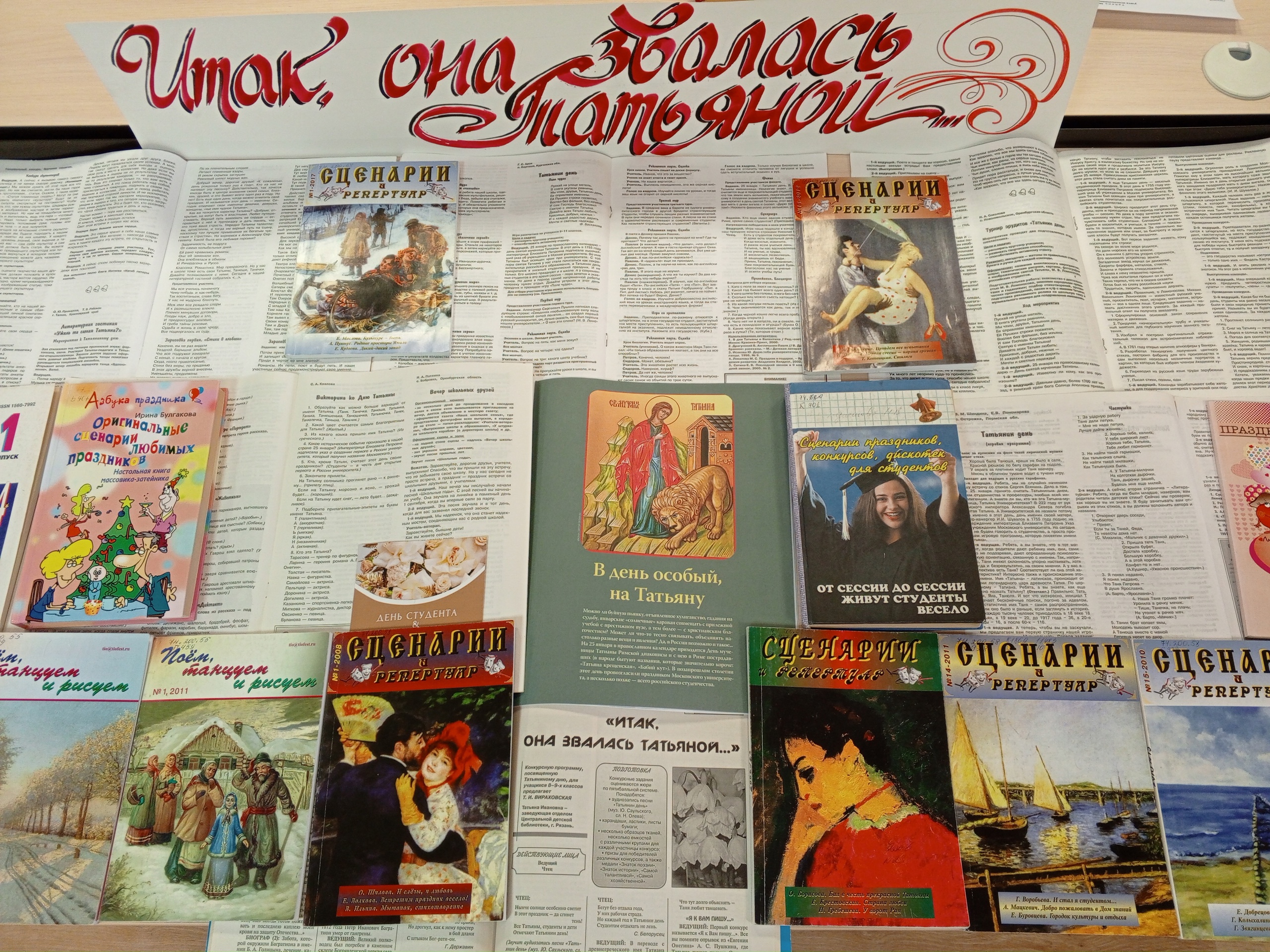 Приглашаем посетить выставку-развал «Итак, она звалась Татьяной…», подготовленную к Татьяниному дню и Дню российского студенчества в отделе литературы по искусству (707 к.).