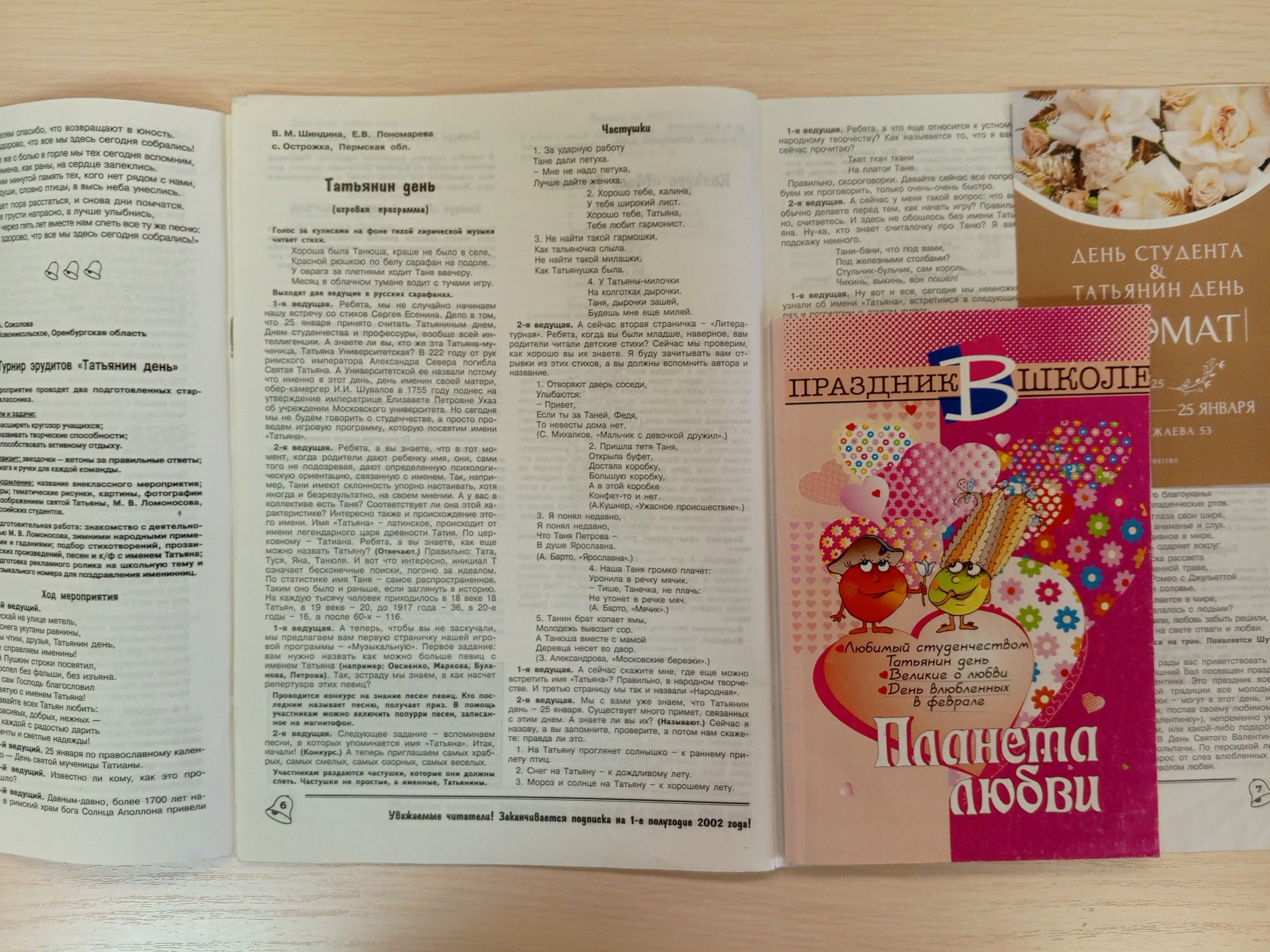 О происхождении праздника, о его истории и связанных с ним традициях вы узнаете, посетив выставку. Экспонируются сборники и журналы «Поем, танцуем и рисуем», «Читаем, учимся, играем», «Последний звонок» и др., на страницах которых рассказывается о празднике, а также представлены сценарные разработки мероприятий для подрастающего поколения, среди них «поле чудес», конкурсные программы, тематические вечера, капустники, турниры эрудитов, литературные гостиные и пр.