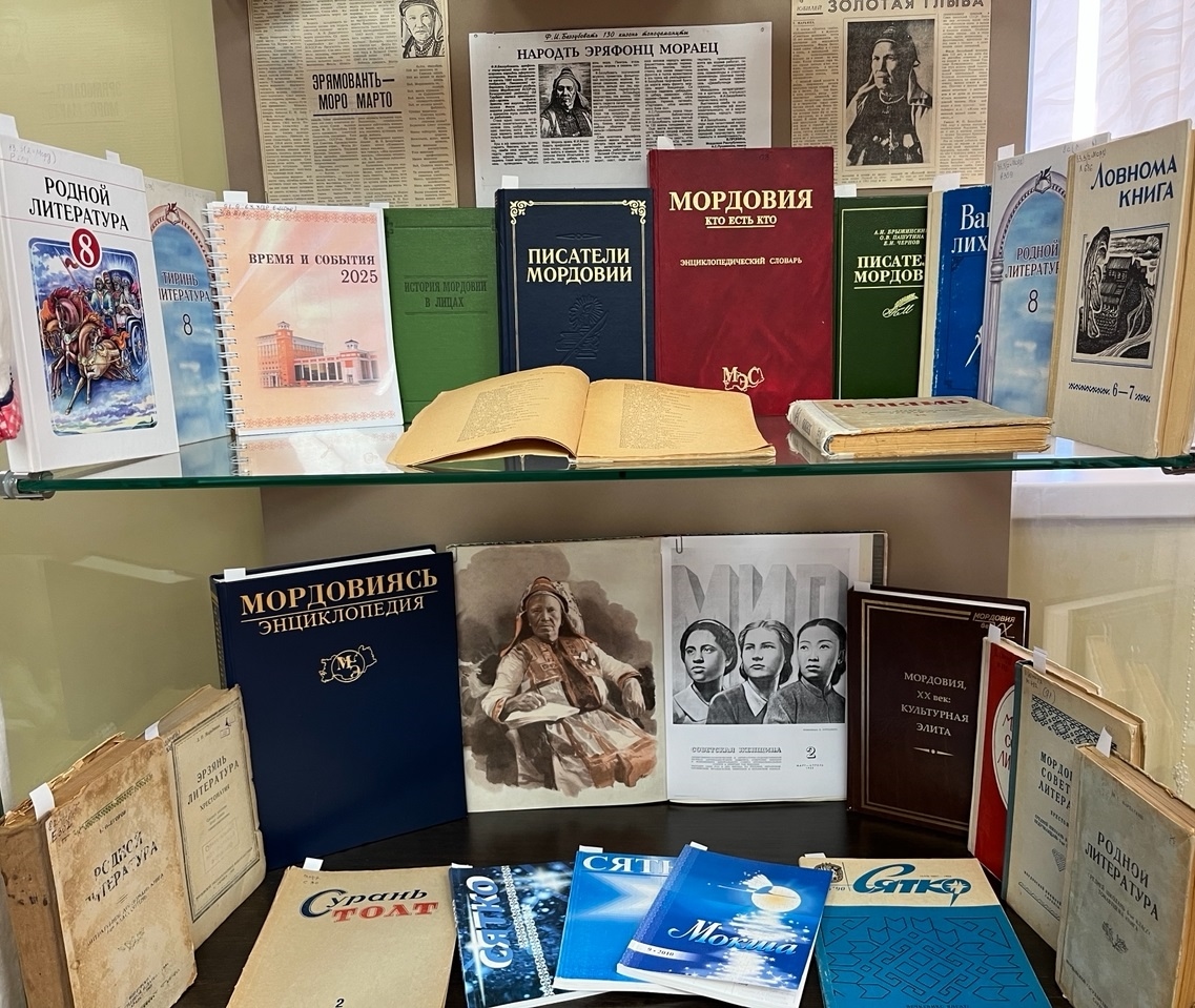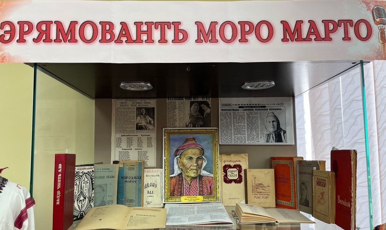 В отделе национальной и краеведческой литературы работает книжная выставка, посвященная мордовской народной сказительнице, члену Союза писателей СССР (1938) Фёкле Игнатьевне Беззубовой.