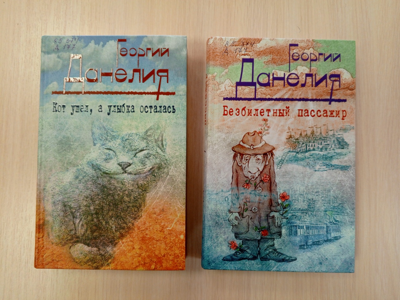 Экспонируются книги Георгия Данелии «Безбилетный пассажир» и «Кот ушел, а улыбка осталась», в которых собраны воспоминания о прожитой жизни и о том, как делали кино, бесценный опыт, горечь утрат и неповторимые истории, отмеченные потрясающим чувством юмора.