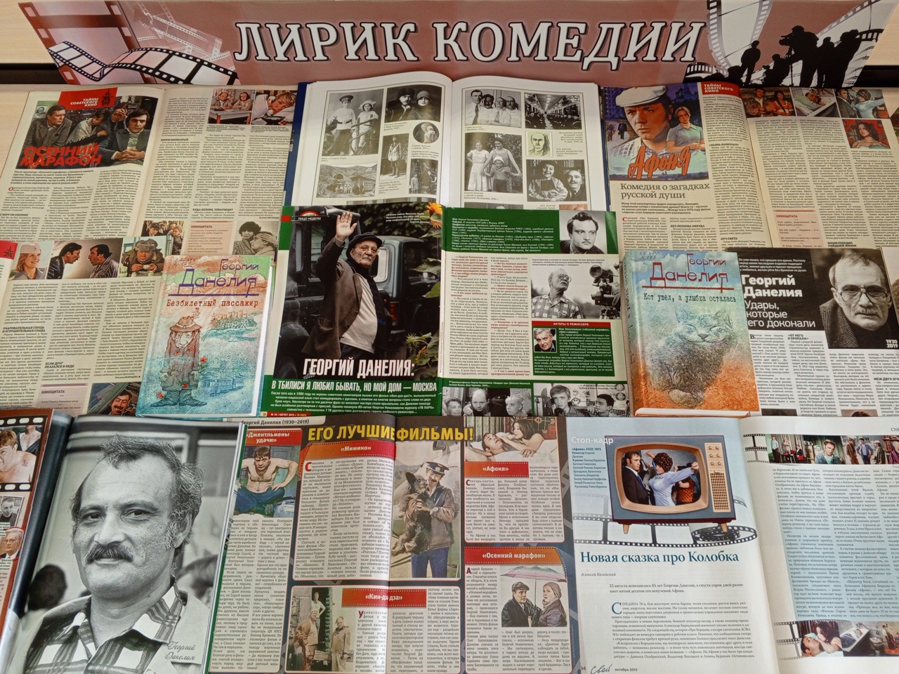 Отдел литературы по искусству приглашает посетить выставку «Лирик комедии», приуроченную к 95-летию со дня рождения Георгия Николаевича Данелии, легендарного советского и российского кинорежиссера, сценариста, мемуариста, народного артиста СССР (1989), лауреата Государственной премии СССР (1978), Государственной премии РСФСР имени братьев Васильевых (1981) и Государственной премии Российской Федерации (1997).