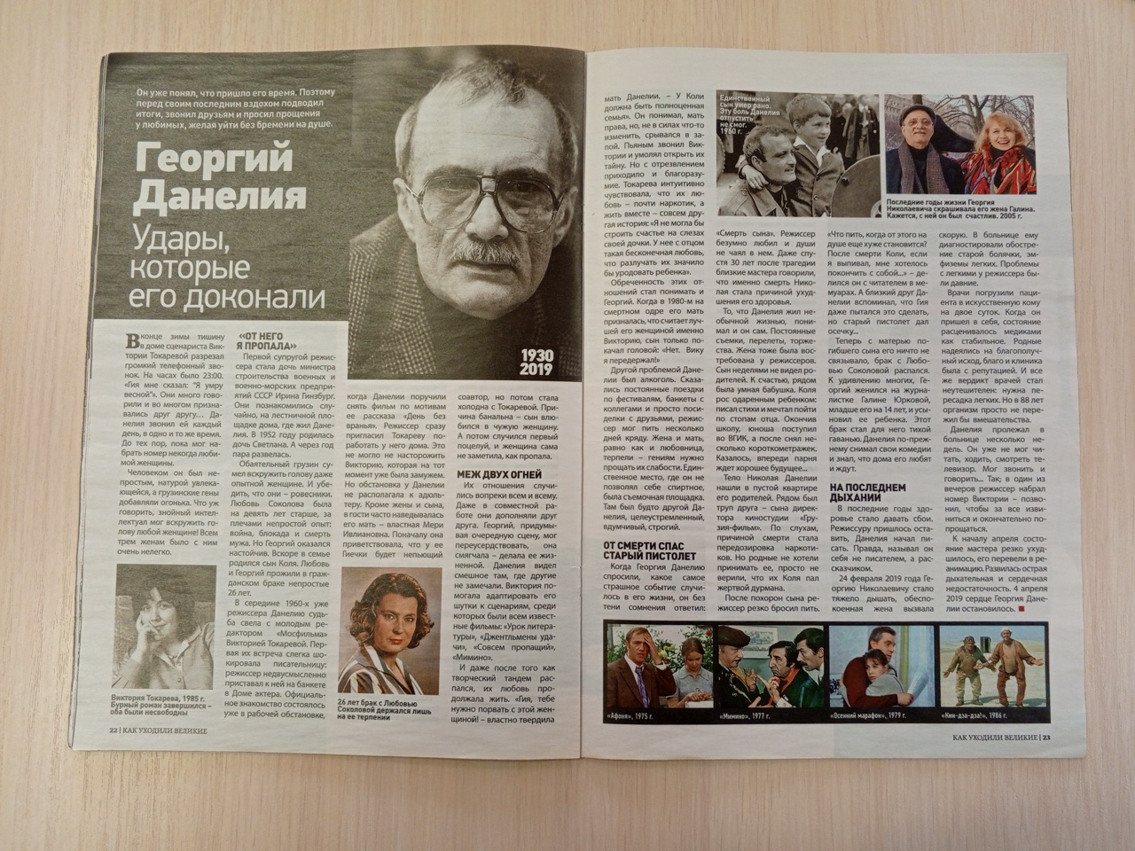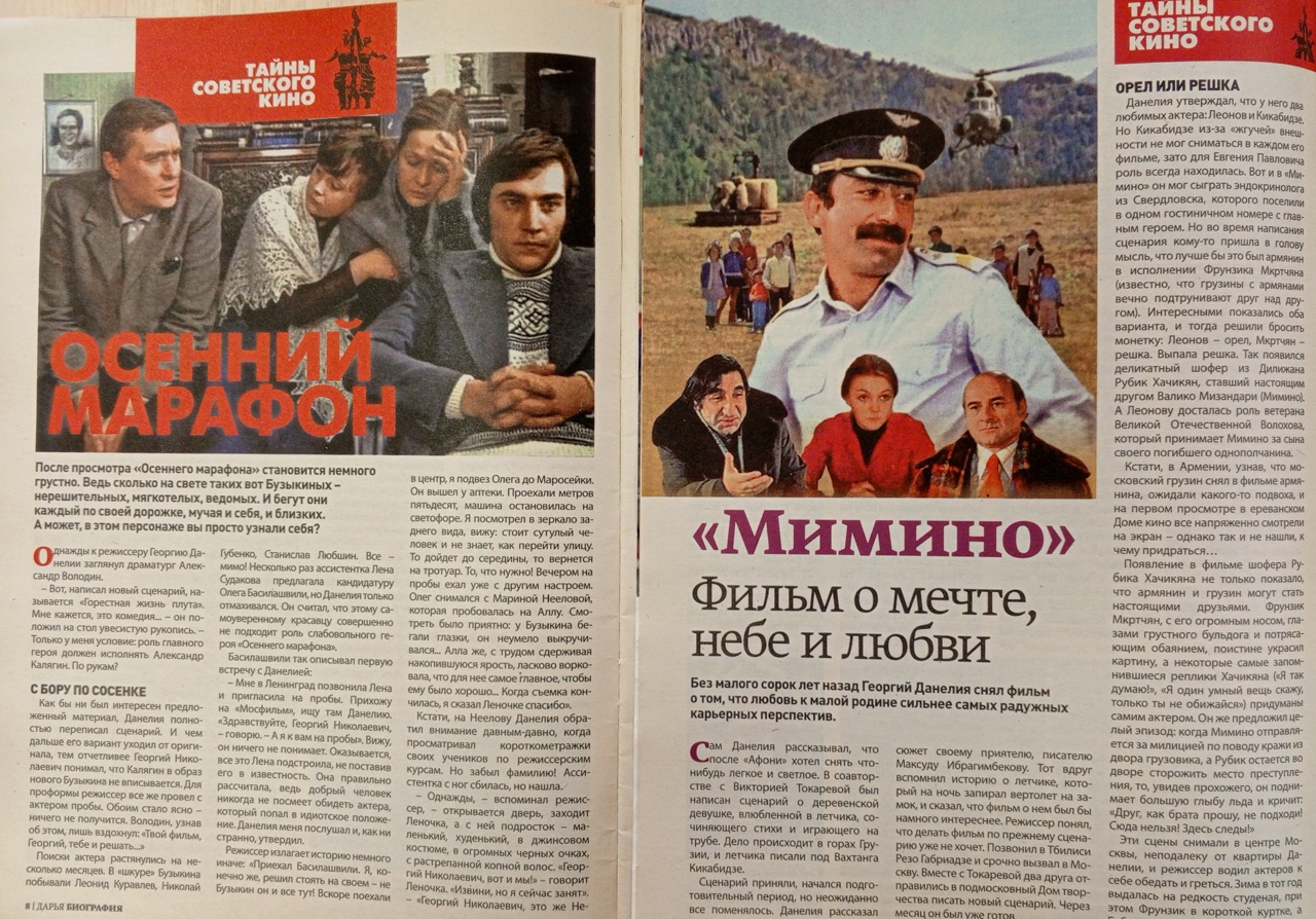 Г. Н. Данелия подарил нам такие разные и великие киноленты, как «Сережа», «Афоня», «Кин-дза-дза», «Слезы капали», «Мимино», «Осенний марафон» и др. Именно Данелия написал сценарий к комедии «Джентльмены удачи», а его фильм «Совсем пропащий» в начале 1970-х был номинирован на «Золотую ветвь» Каннского кинофестиваля. Все его работы пропитаны добрым комедийным юмором, но при этом наполнены глубоким смыслом.