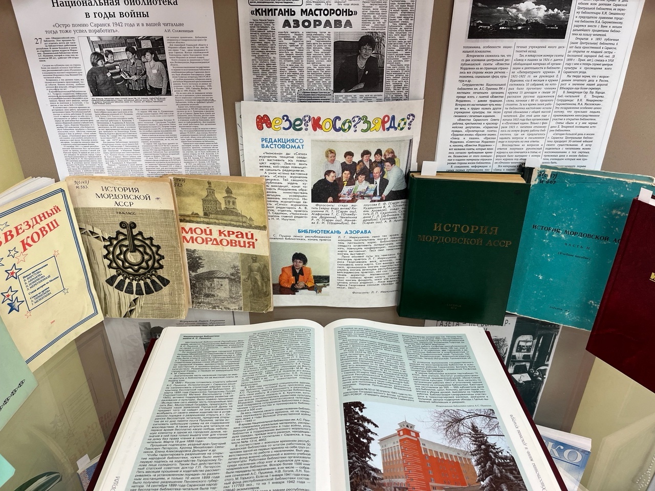 В отделе национальной и краеведческой литературы (603 к.) работает книжная выставка, посвященная члену Союза журналистов СССР (1989), заслуженному работнику культуры РМ (2006) Ларисе Георгиевне Меркушкиной.