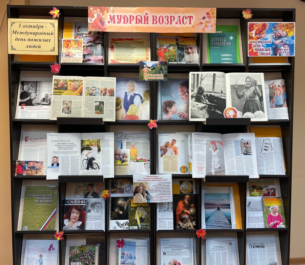 1 октября в календаре отмечен как Международный день пожилых людей. К этой дате отдел периодических изданий (110 к., 2 корпус) подготовил выставку-просмотр «Мудрый возраст»», которая рассказывает о проблемах и радостях людей пожилого возраста.