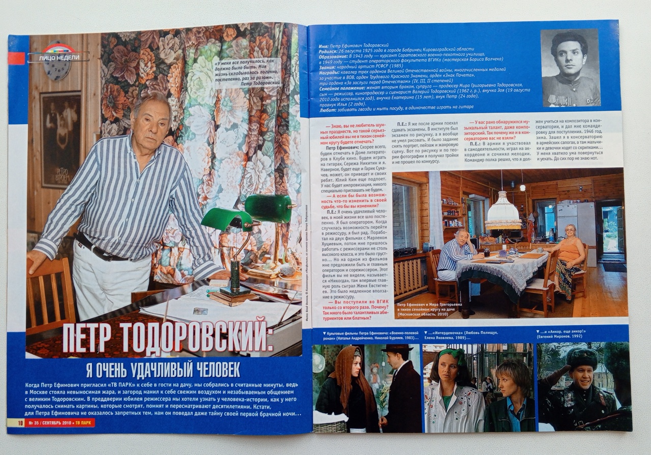 Имя Петра Тодоровского навсегда вписано в историю советского и российского кино. Он прошел Великую Отечественную войну – сражался под Варшавой и в Берлине, получил тяжелую контузию, был награжден орденами и медалями. После демобилизации работал на заводе стеклотары, а по вечерам ходил в изостудию, пока однажды не решился на кардинальные перемены – поступить во ВГИК на операторский факультет.