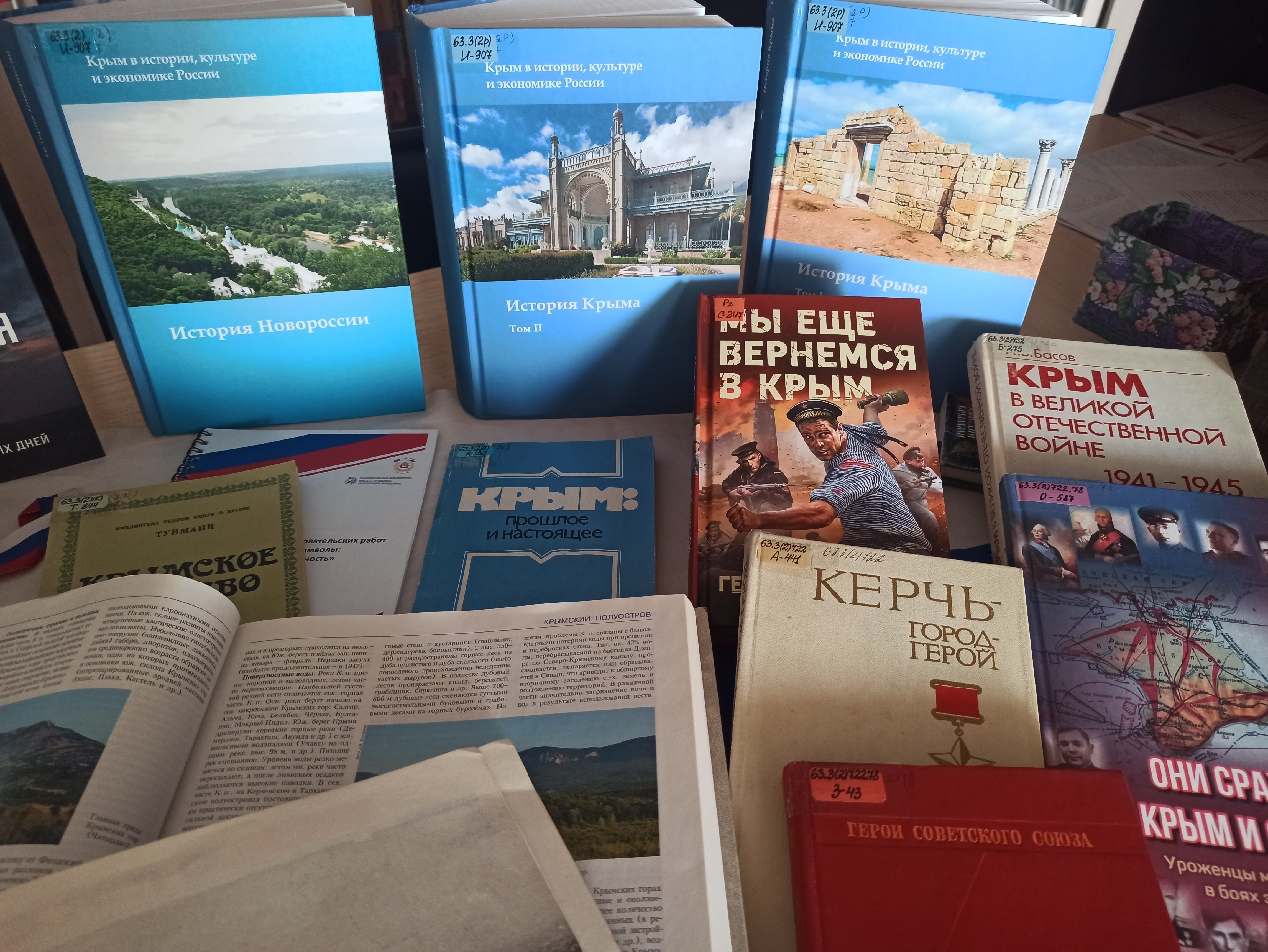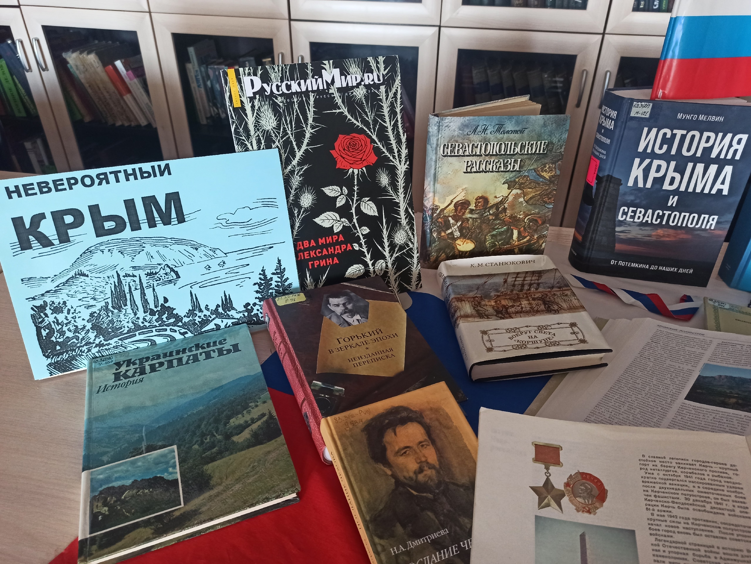 В отделе гуманитарной литературы (405 к.) действует выставка-развал «Невероятный Крым», посвященная этой дате. Представлены издания по истории Крыма со времен древнего Херсонеса, Крымского ханства, Русско-турецкой войны; книги, рассказывающие о событиях в Крыму в 1853–1856 гг., времени Великой Отечественной и Гражданской войн, о постсоветском Крыме, а также литература о памятных местах, связанных с великими русскими писателями и выдающимися гражданами России.