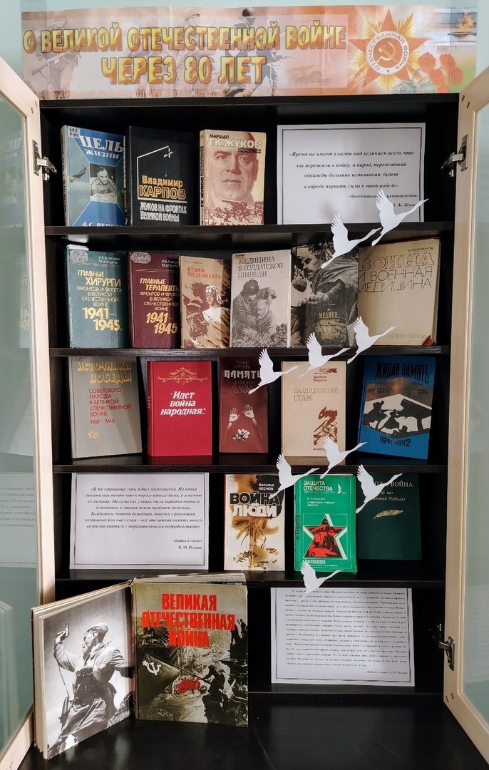 В память о великих потрясениях, утратах и подвигах людей, переживших тяжелейшие испытания и одержавших победу над гитлеровскими захватчиками, в отделе естественнонаучной и производственной литературы открыта книжная выставка «О Великой Отечественной войне через 80 лет».