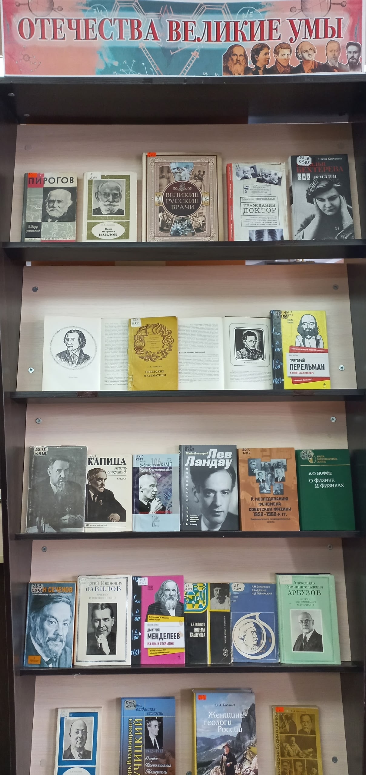 В Пушкинке к этой знаменательной дате всегда готовится ряд мероприятий. В отделе естественнонаучной и производственной литературы (503 к.) ежегодно работают книжные выставки. В этом году экспозиция «Отечества великие умы» посвящена исследователям из разных естественнонаучных направлений. Библиотекари постарались подобрать литературу, которая освещает человека науки не только со стороны его деятельности, что очень важно, но и раскрывает биографические моменты, которые формируют полный портрет личности.