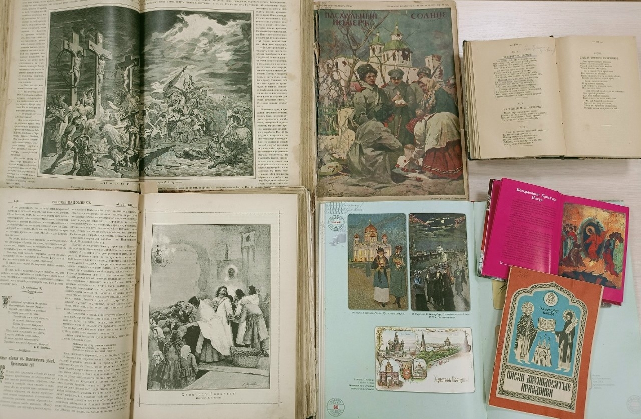 В фонде хранится пасхальный выпуск петроградского литературно-художественного и юмористического еженедельника «Солнце России» № 10–11 (265–266) за 1915 год. Этот выпуск погружает читателя в атмосферу праздника благодаря фотоэтюдам А. Ф. Антоновой и А. В. Черепановой «С Светлым праздником!», «В Святую ночь», «Похристосуемся!..», «Праздничные мотивы», рассказу Ю. Слёзкина «Сырная Пасха» и ностальгическим миниатюрам Л. Аркадского «Пасха в старину».