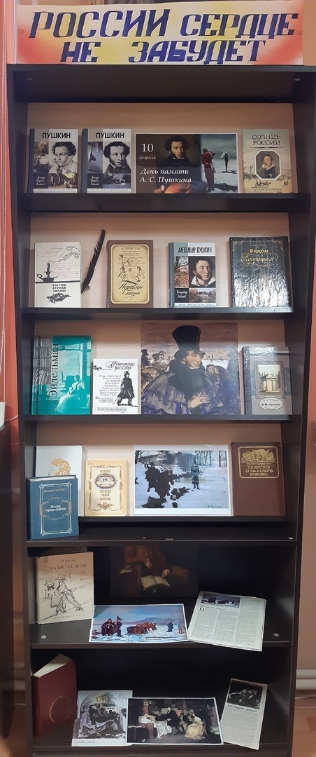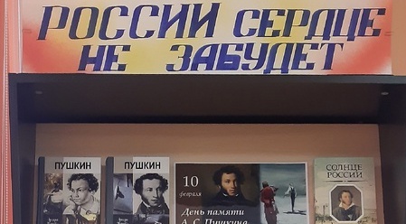 Ко Дню памяти поэта отделом абонемента оформлена книжно-иллюстративная выставка «России сердце не забудет», на которой представлены издания, освещающие трагические события дуэли и смерти Александра Сергеевича, его жизнь и творчество.