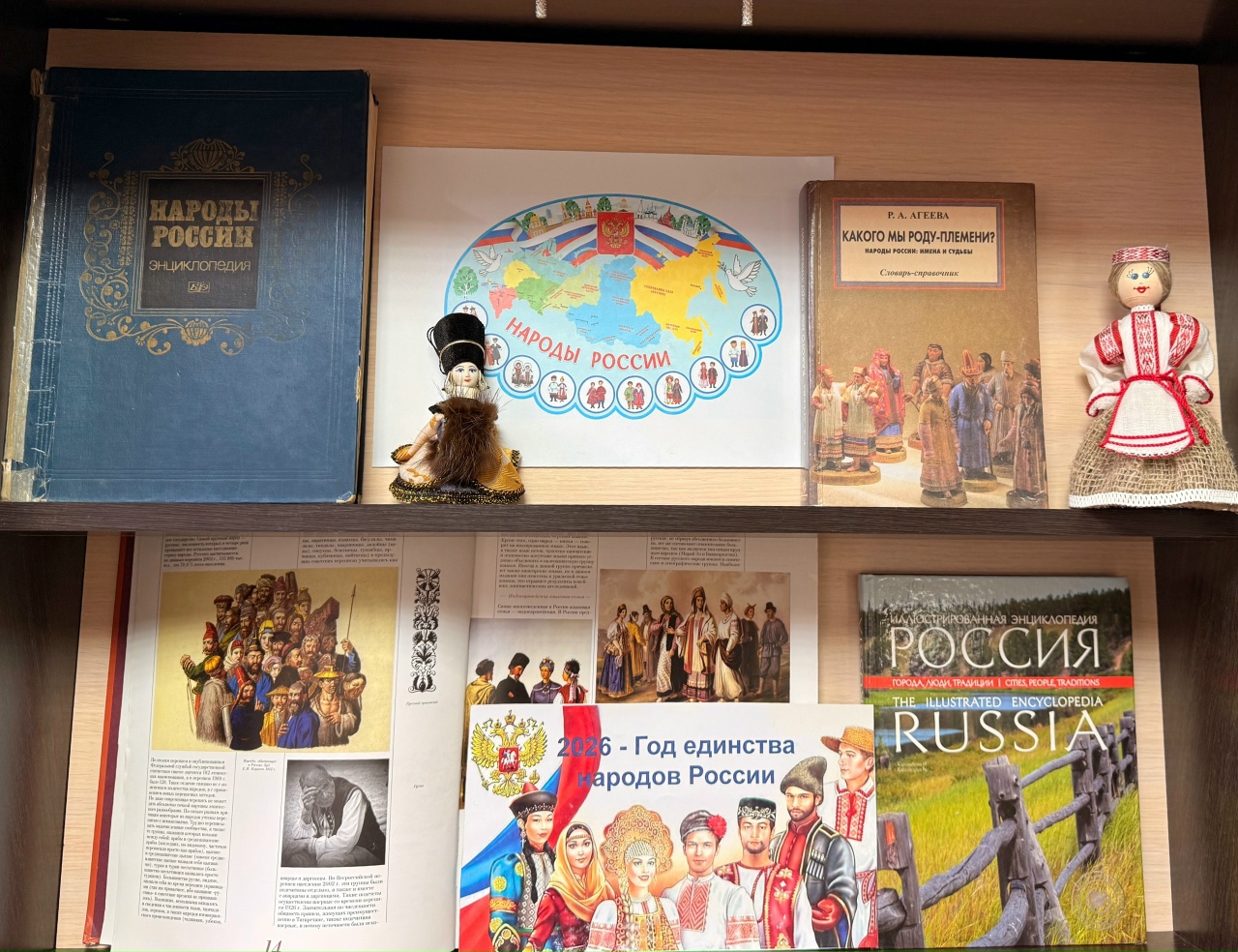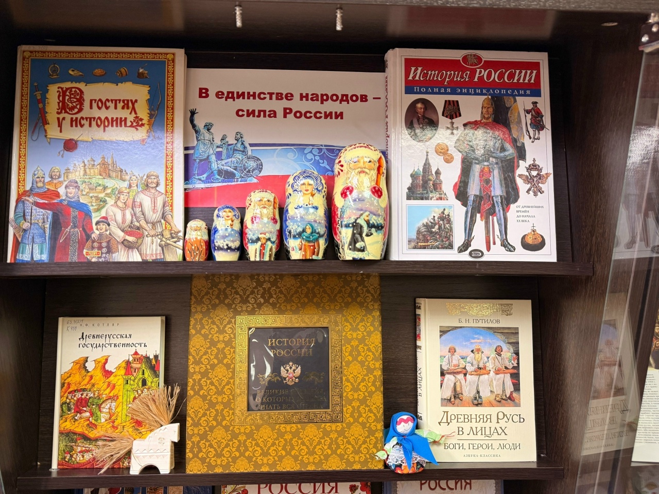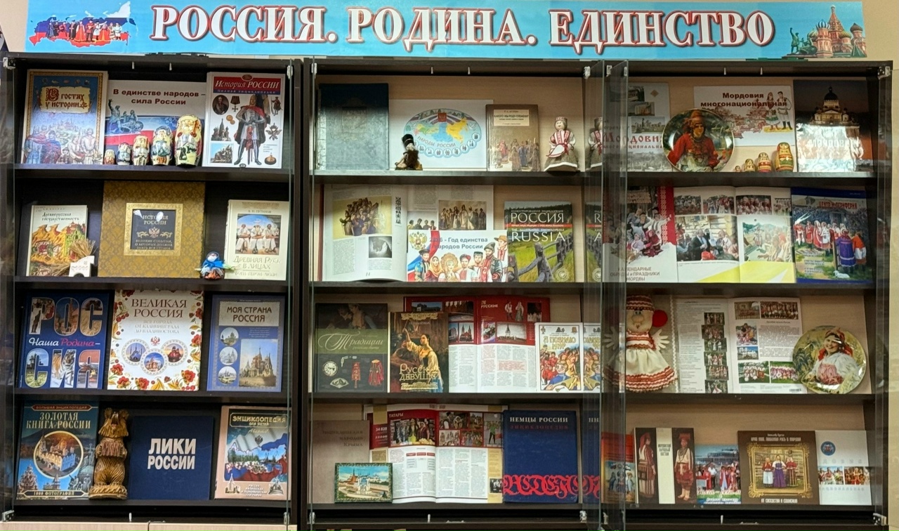 В отделе информационно-библиографического обслуживания (305 к., 1 корпус) работает выставка-инсталляция «Россия. Родина. Единство», организованная к Году народного единства.