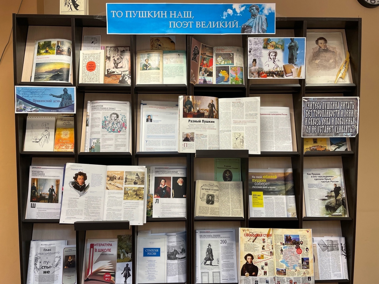 К этой дате сотрудники отдела периодических изданий (110 к., 2 корпус) подготовили выставку-просмотр «То Пушкин наш, поэт великий…», посвященную жизни и творчеству выдающегося мастера словесности.