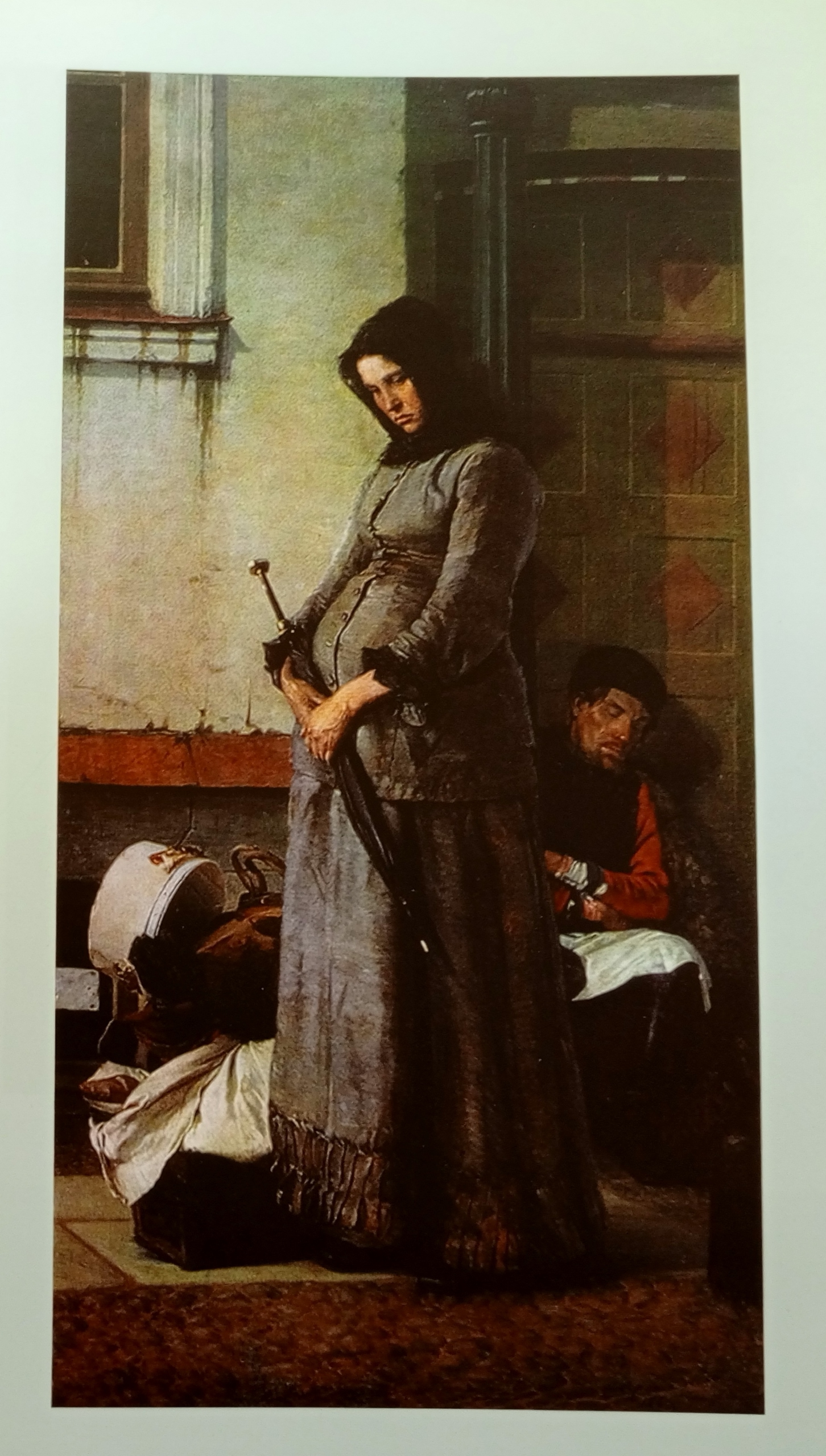 Экспонируются репродукции картин отечественных и зарубежных художников, в центре которых женщины в положении в разных жизненных ситуациях. Среди них – «Портрет графини П. И. Шереметевой» (П. И. Жемчуговой) (1802–1803) Н. Аргунова; «Весна» (около 1482) С. Боттичелли; «Итальянская семья в ожидании ребенка» (1831) К. Брюллова; «Надежда» (1909) Г. Климта; «Семья художника» (1866) И. Н. Крамского; «Мадонна с младенцем» (1470–1491) Леонардо да Винчи; «Материнство» (1871) и «Мечты о будущем» (1868) В. М. Максимова; «Вдовушка» (1851–1852) П. А. Федотова; «Выгнали» (1883) Н. Ярошенко и др.