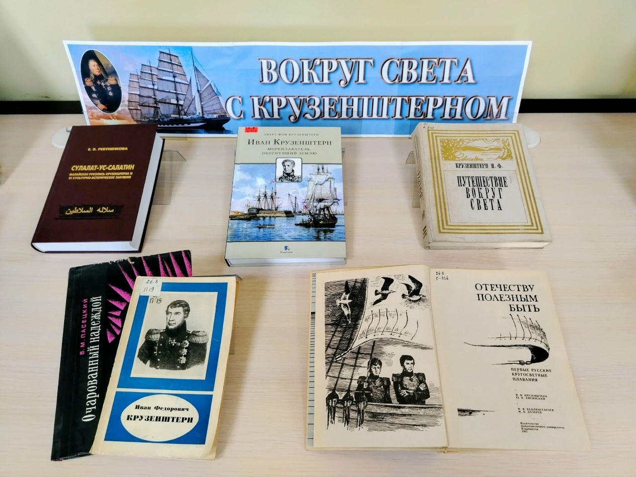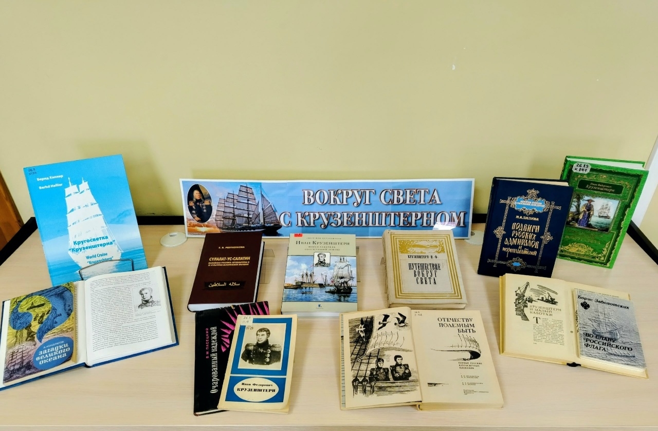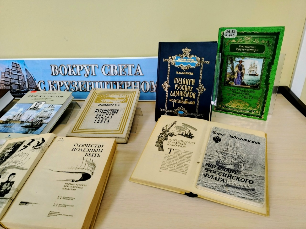 В честь 255-летия великого мореплавателя в отделе естественнонаучной и производственной литературы представлена книжная выставка «Вокруг света с Крузенштерном».