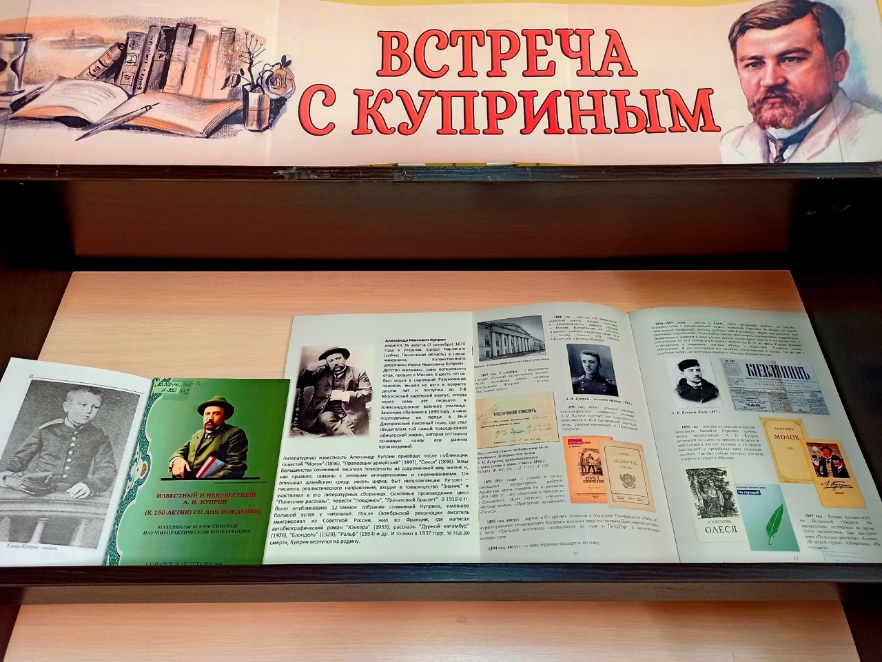 К 155-летию со дня рождения А. И. Куприна, признанного мастера короткого рассказа, автора замечательных повестей, одного из самый талантливых русских прозаиков, в отделе гуманитарной литературы (405 к.) открылась тематическая книжная выставка «Встреча с Куприным», которая продлится до конца сентября.