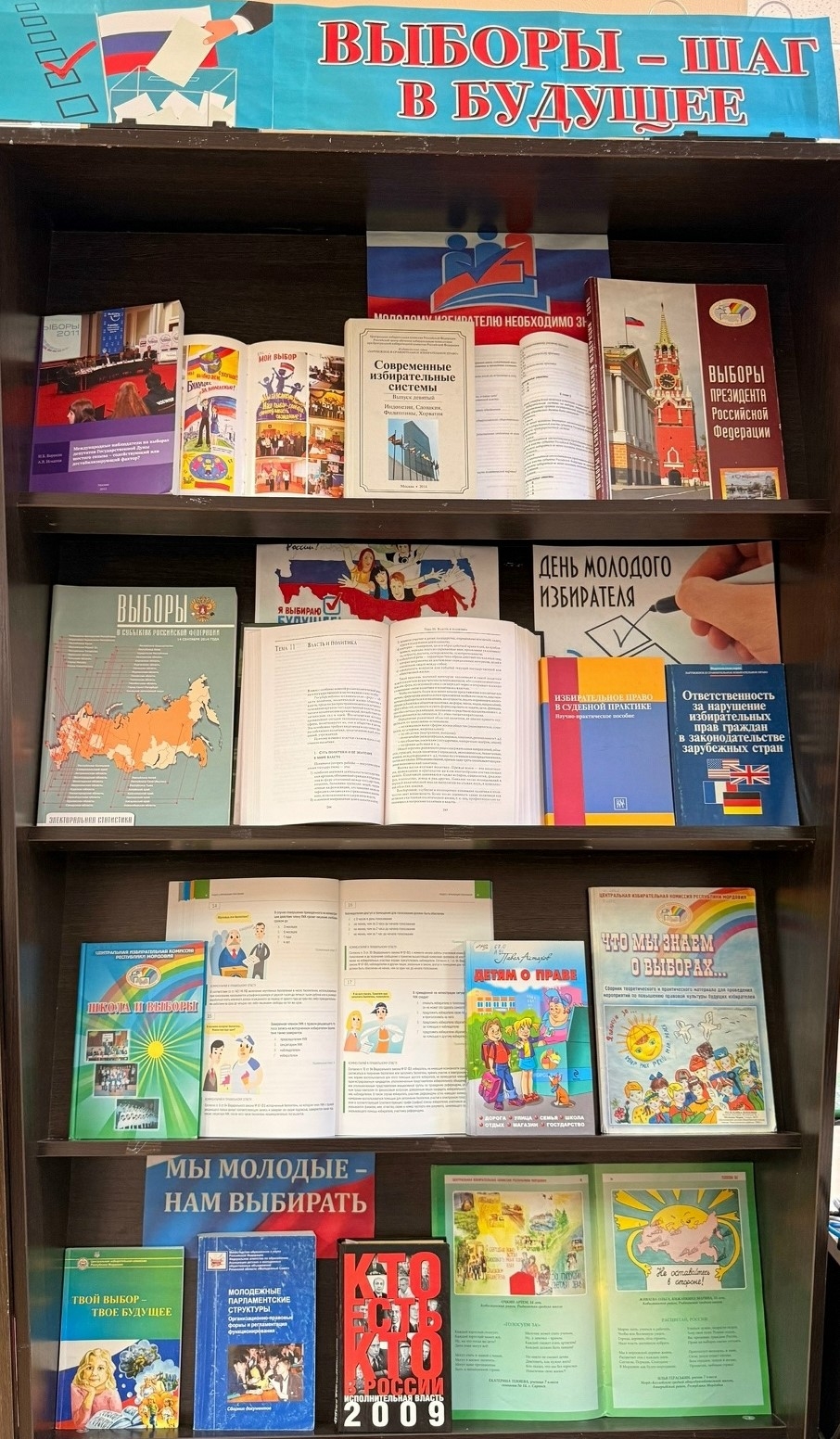 В преддверии Дня молодого избирателя в отделе информационно-библиографического обслуживания (305 к., 1 корпус) подготовлена книжная выставка «Выборы – шаг в будущее», на которой собраны нормативные и правовые документы, регулирующие то, как должны проводиться выборы, энциклопедические издания, справочники, материалы из фонда отдела.