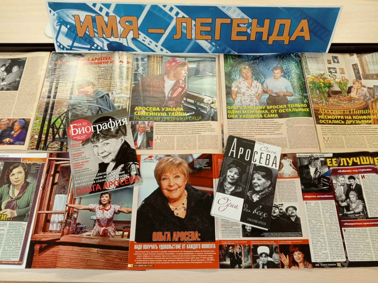 21 декабря исполняется 100 лет со дня рождения замечательной актрисы театра и кино Ольги Александровны Аросевой (1925–2013). К этой дате в отделе литературы по искусству подготовлена книжная выставка «Имя – легенда».