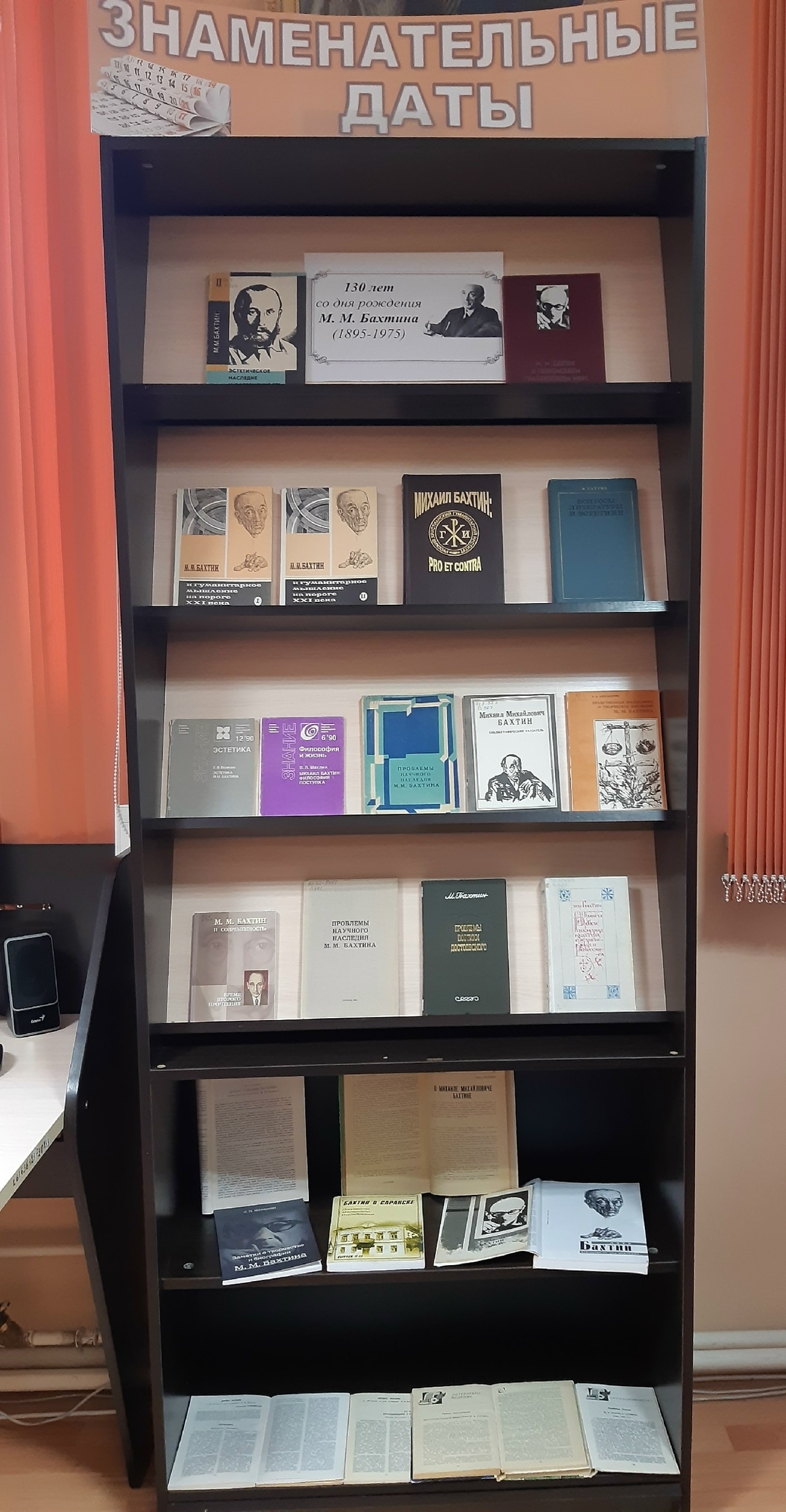 К 130-летию со дня рождения М. М. Бахтина в отделе абонемента (109 к., 2 корпус) оформлена книжно-иллюстративная выставка, которая знакомит читателей с его трудами и изданиями о жизни и творчестве ученого.