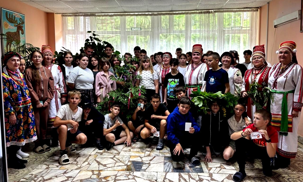 28 июня сотрудники отдела национальной и краеведческой литературы Пушкинки совместно с участницами народного фольклорно-этнографического ансамбля «Ламзурь» Дворца культуры г. о. Саранск ДК «Луч» провели фольклорный праздник «Весенне-летние обряды мордвы» для группы детей из Каланчакского района Херсонской области, отдыхающих в санатории «Лесная сказка». В программу праздника вошли: познавательная информация по календарно-обрядовым традициям эрзян и мокшан; демонстрация обычаев и обрядов; старинные песни и национальные мордовские игры.