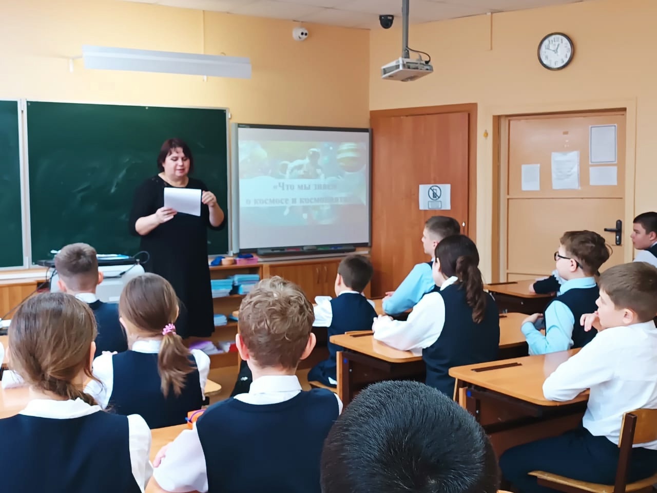 8 апреля сотрудники отдела информационно-библиографического обслуживания Пушкинки в школе № 16 провели для пятиклассников увлекательный гагаринский час «Дорога в космос».