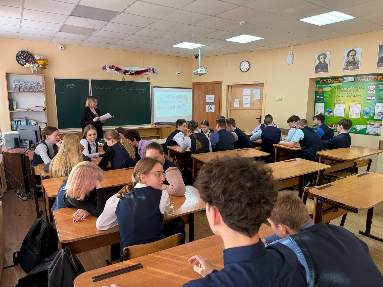 Для восьмиклассников школы № 16 библиотекари провели увлекательную игру «Литературное лото». После разминочного раунда, в котором командам нужно было угадать писателей по фотографии, участники попробовали себя в роли эрудитов, расшифровав названия произведений этих писателей.